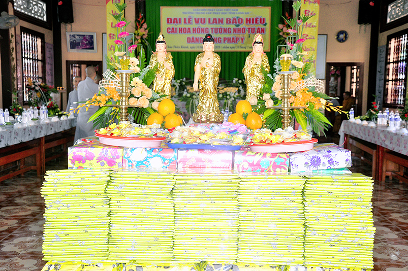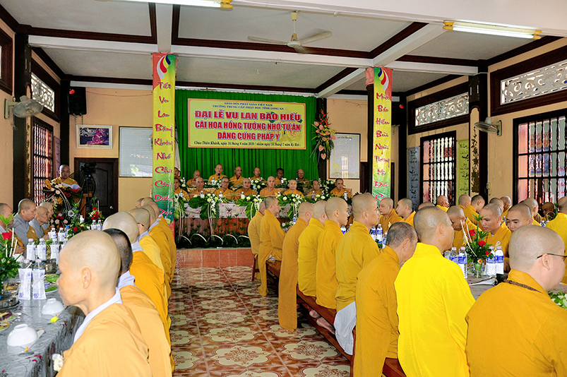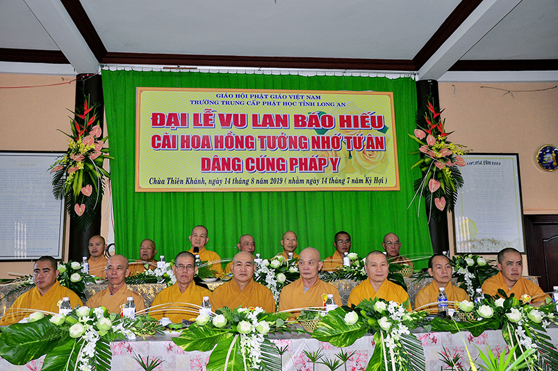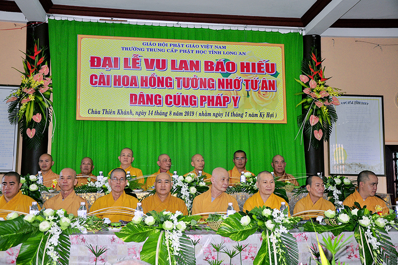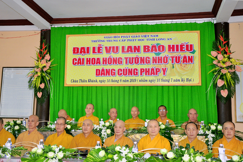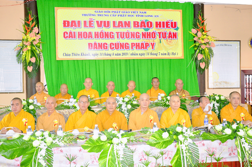 Tiếp nối truyền thống tốt đẹp từ ngàn đời của Dân tộc Việt Nam, và phát huy tinh thần tri ân và báo ân theo lời Phật dạy. Hàng năm đến tháng 7 mùa vu lan báo hiếu, là cơ duyên để những người con hiền cháu thảo thể hiện tấm lòng hiếu kính của mình đối với ông bà cha mẹ còn hiện tại, cũng như tổ tiên, ông bà cha mẹ đã mất. Thể theo tinh thần đó, sáng ngày 14/8/2019( 14/07/Kỷ hợi) chùa Thiên Khánh( Trường Trung Cấp Phật học tỉnh Long An), TP.Tân An, tỉnh Long An, đã long trọng tổ chức Đại lễ Vu Lan Báo hiếu cài hoa hồng tưởng nhớ tứ ân, dâng cúng Pháp y Ca sa.
