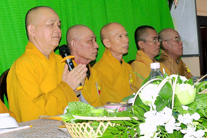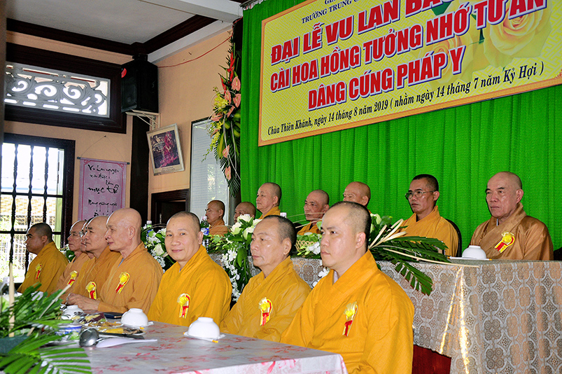 Thay mặt cho Chư Tôn đức Nhị Bộ Đại Tăng, HT.Thích Minh Thiện ban lời đạo từ chứng minh công đức quý Phật tử. Hòa thượng nói: “Chúng ta noi gương hiếu hạnh của Ngài Mục Kiền Liên nên thực hiện lễ Vu Lan Thắng Hội này, đây là buổi lễ sau khi Chư Tôn Thiền đức sau ba tháng an cư kiết hạ thúc liễm thân tâm, trao giồi giới đức tinh nghiêm, với chí nguyện “Thượng cầu Phật đạo, Hạ hóa chúng sanh” Ngày nay Chư Tôn Thiền đức hiện diện là biểu tượng thiêng liêng cho tất cả Phật tử dâng lên lời tôn kính của mình. Tam bảo là nơi cao quý để chúng sanh nương về tu học theo giáo lí từ bi trí tuệ của Phật, học Phật để giảm đi sự tham lam sân hận si mê, bớt đi những sự chấp trước. Giáo lí của đức Phật giúp cho chúng ta hiểu và chuyển hóa nỗi khổ niềm đau trong cuộc đời của mình. Do vậy quý Phật tử phải tự dặn lòng mình luôn luôn có niềm tin sâu vào tam bảo, phải sống trên con đường chánh đạo, khuyên người thân của mình biết quy y Tam bảo, đó là những người con Phật chân chánh đồng hoan hỷ khi về tham dự lễ Vu Lan.