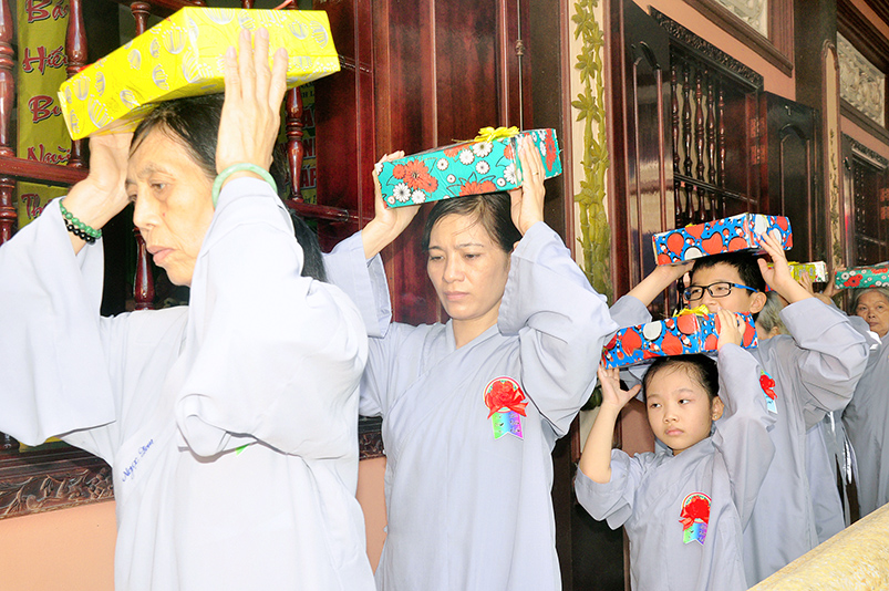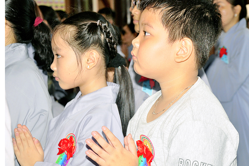 Để thể hiện tấm lòng của những người con hiếu hạnh, Từng cánh hoa Hồng lần lượt được các em Phật tử cài lên ngực áo chư Tôn đức, các đấng sanh thành để bày tỏ lòng tôn kính, tri ân và biết ân đến các bậc hướng đạo sư, những Vị Thầy đã hướng dẫn Phật tử chuyển mê khai ngộ. Và công lao sanh thành dưỡng dục của cha và mẹ một đời đã không quản ngại vất vả khó khăn nuôi con khôn lớn trưởng thành.