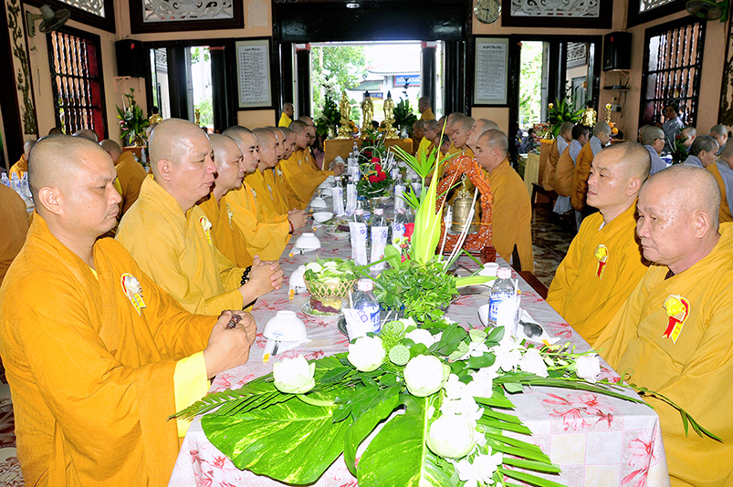 Buổi lễ với sự chứng minh tham dự của Hòa thượng Thích Thiện Huệ – Chứng minh BTS GHPGVN tỉnh Long An; HT. Thích Huệ Hồng- Chứng minh Ban Trị sự GHPGVN tỉnh Long An; HT. Thích Minh Thiện – Ủy viên Hội đồng Trị sự Trung ương, Phó Ban Hoằng pháp Trung ương, Trưởng Ban Trị sự GHPGVN tỉnh Long An; TT. Thích Minh Thọ – Ủy viên HĐTSTƯ, Phó Ban Trị sự kiêm Trưởng Ban Pháp chế Ban Trị sự GHPGVN tỉnh Long An; ĐĐ. Thích Đức Hoàng – Phó Ban Trị Sự GHPGVN tỉnh Long An; ĐĐ. Thích Lệ Trí – Ủy viên HĐTSTƯ, Phó Ban Trị sự kiêm Trưởng Ban Giáo dục Tăng Ni Ban Trị Sự GHPGVN tỉnh Long An; Ni Trưởng Thích Tuệ Đăng – Trưởng Phân Ban Ni giới BTSGHPGVN Tỉnh Long An – Ni Trưởng Thích Tuệ Như- Phó Phân Ban Ni giới Trị sự GHPGVN tỉnh Long An; Ni Sư Thích Như Tâm – Thủ quỹ Ban Trị Sự GHPGVN tỉnh Long An; Ni Sư Diệu Phước – Chánh văn phòng 2 Trường Trung Cấp Phật Học tỉnh Long An; Cùng Chư Tôn Thiền Đức Tăng Ni trong thường trực trong BTS.GHPGVN tỉnh Long An, Tp. Tân An, các huyện, Chư tôn đức trụ trì các tự viện và hơn 300 Phật tử đồng về tham dự.