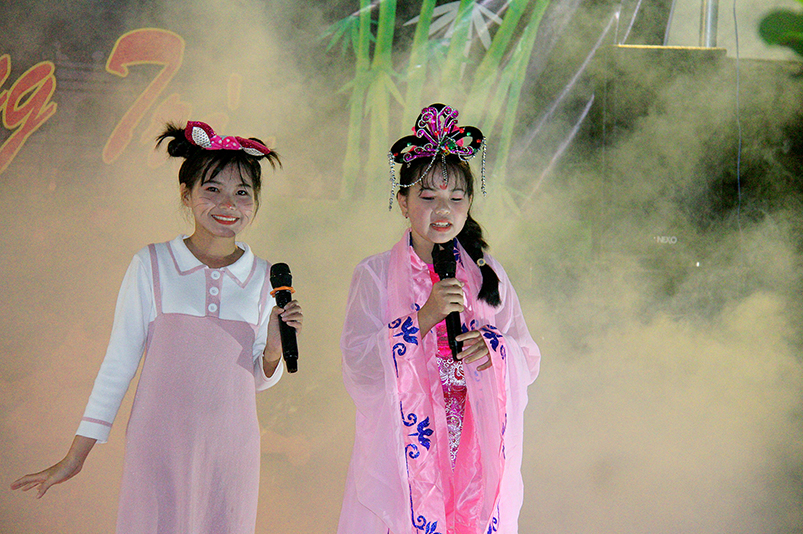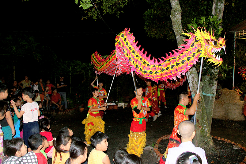 Đúng vào lúc 18 giờ cùng ngày chương trình văn nghệ ” vui hội trăng rằm ” được bắt đầu chính thức với màn múa lân khai mạc lễ hội.