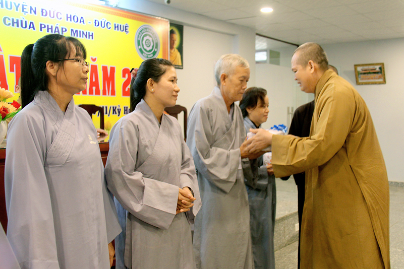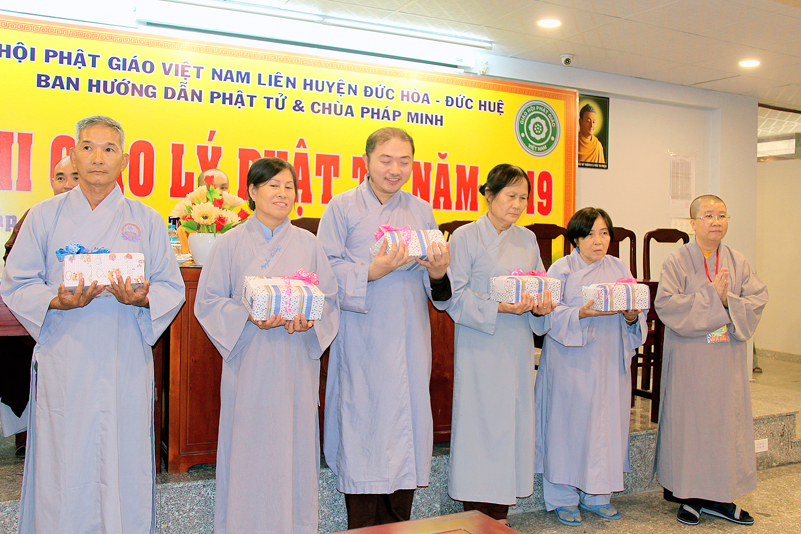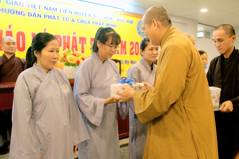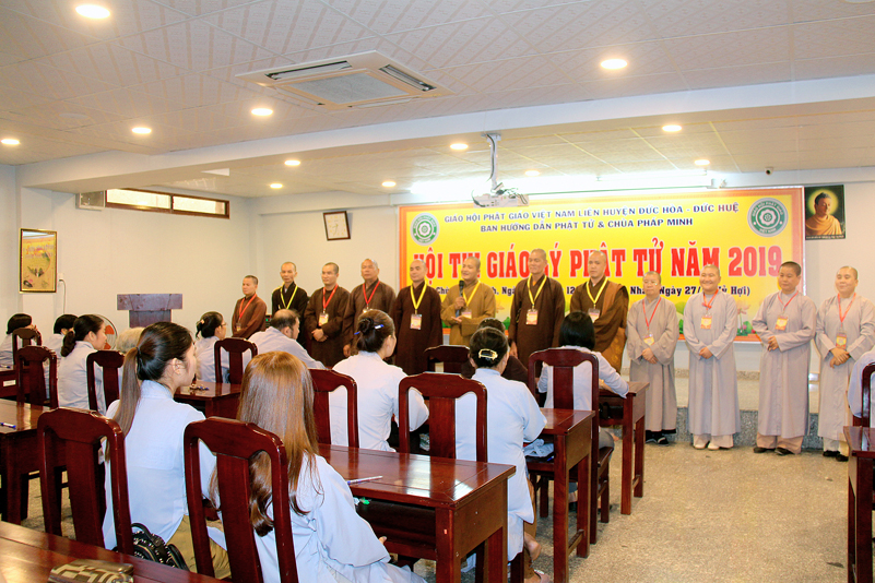 Chứng minh và tham dự có: HT. Thích Minh Thiện – Ủy viên HĐTS, Phó Trưởng Ban Hoằng Pháp TƯ, Trưởng phân ban tập huấn Hoằng pháp viên Ban Hoằng pháp TƯ, Trưởng Ban Trị Sự GHPGVN tỉnh Long An, Hiệu Trưởng Trường Sơ Trung cấp Phật học Long An; Thượng tọa Thích Lệ Tấn: Phó Trưởng ban Từ thiện Xã hội GHPGVN tỉnh Long An, Phó Trưởng ban Thường trực BTS GHPGVN liên huyện Tân Thạnh, Tx Kiến Tường, Vĩnh Hưng; ĐĐ. Thích Lệ Duyên- Chánh Thư ký BTS, Trưởng ban Phật Giáo Quốc Tế GHPGVN tỉnh Long An, Phó ban Trị sự GHPGVN liên huyện Đức Hòa-Đức Huệ, Trưởng ban Tổ chức; ĐĐ. Thích An Nhựt Trưởng ban Hướng Dẫn Phật Tử GHPGVN tỉnh Long An; ĐĐ.Thích Tắc Nguyên-Phó trưởng ban Hoằng pháp tỉnh Long An; ĐĐ Thích Huệ Thông- Trưởng ban Thông Tin Truyền Thông GHPGVN tỉnh Long An; ĐĐ.Thích Thiện Trực-Phó ban Trị sự GHPGVN liên huyện Đức Hòa- Đức Huệ. Thích Thiện Nguyện – Trưởng ban Hướng dẫn Phật tử GHPGVN Liên huyện Đức Hòa- Đức Huệ, đồng Trưởng ban Tổ chức; ĐĐ.Thích Thiện An- Trưởng ban Pháp chế GHPGVN liên huyện Đức Hòa- Đức Huệ; ĐĐ.Thích Trí Huệ-Phó Thư ký ban Trị sự GHPGVN liên huyện Đức Hòa- Đức Huệ; chư tôn đức Tăng Ni Ban trị sự GHPGVN liên huyện Đức hòa-Đức Huệ và trên 200 Phật tử trong và ngoài huyện về tham dự trong tinh thần cùng nhau học hỏi.