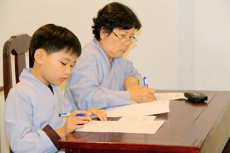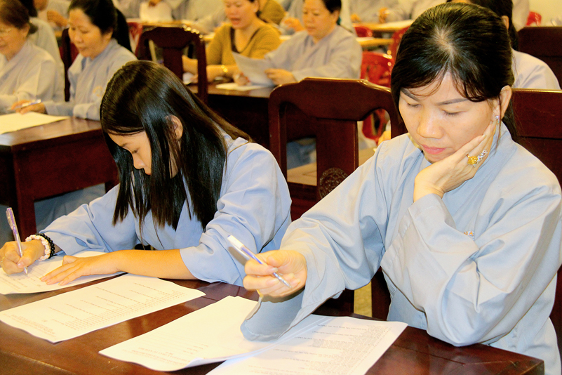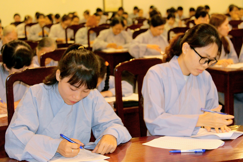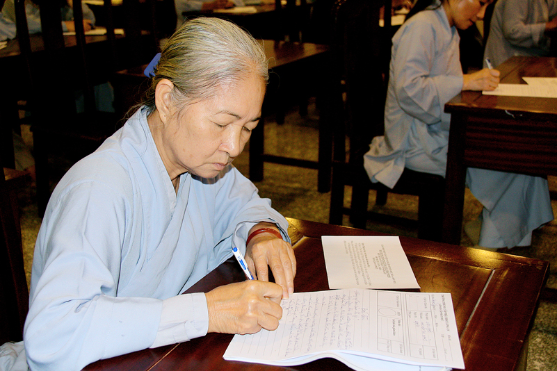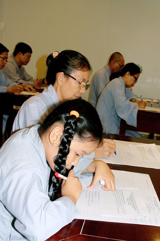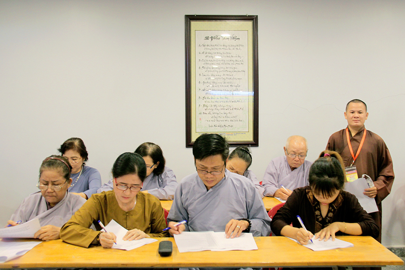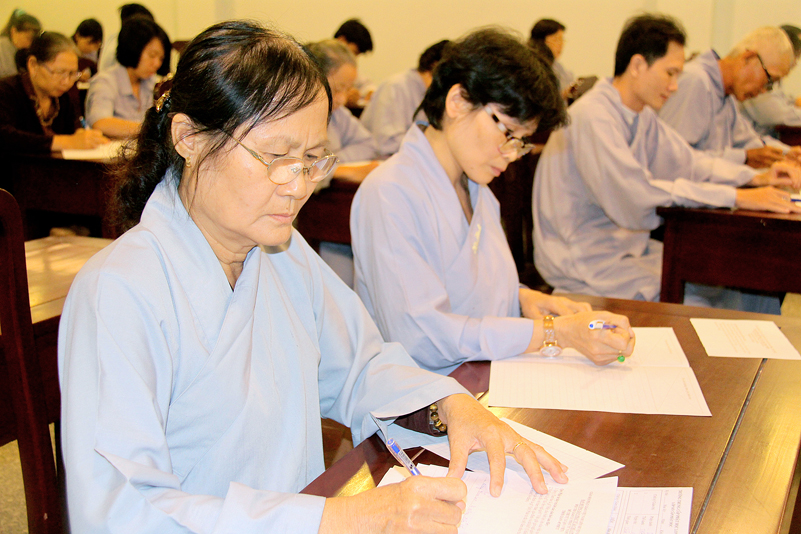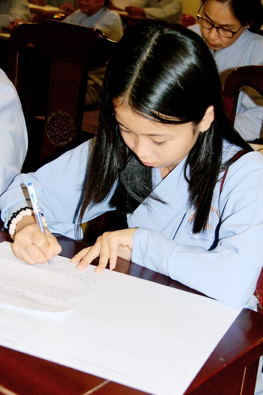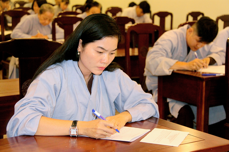 Tiếp theo là phần thi Viết với khoảng gần 80 Phật tử đăng ký thi viết kết quả đạt được: 1 giải nhất; 2 giải nhì; 1 giải ba và 5 giải khuyến khích.