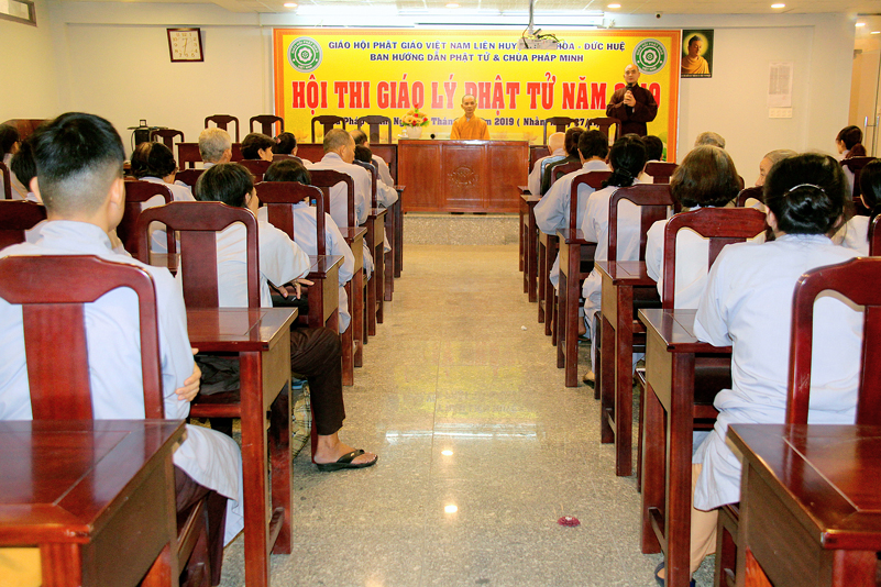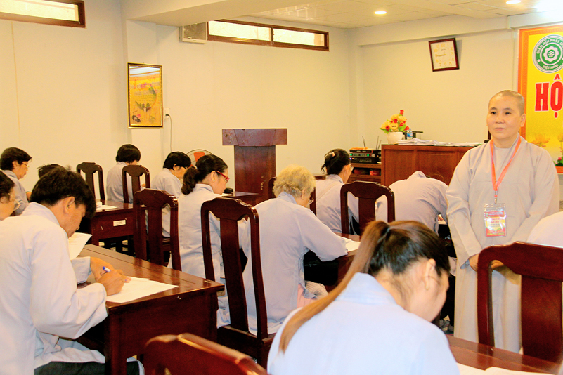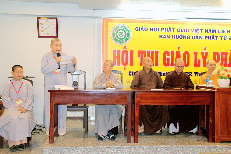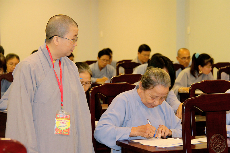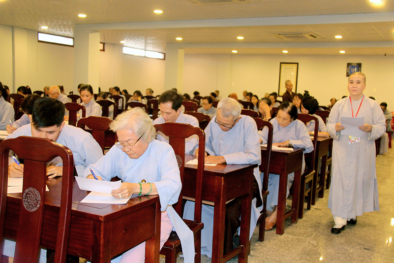 Sau lời chúc hội thi thành công tốt đẹp, ĐĐ.Thích Thiện Nguyện đã triển khai nội quy thi và phương cách làm bài trắc nghiệm cho Phật tử. Buổi thi trắc nghiệm diễn ra một cách nghiêm túc. Kết quả đat được: 1 giải nhất; 2 giải nhì; 1 giải ba và 5 giải khuyến khích.