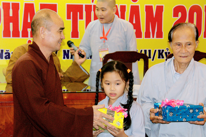 Và 1 giải khuyến khích dành cho Phật tử nhỏ tuổi nhất (8 tuổi), 1 phần dành cho vị Phật tử lớn tuổi nhất (82 tuổi) trong hội thi ngày hôm nay.