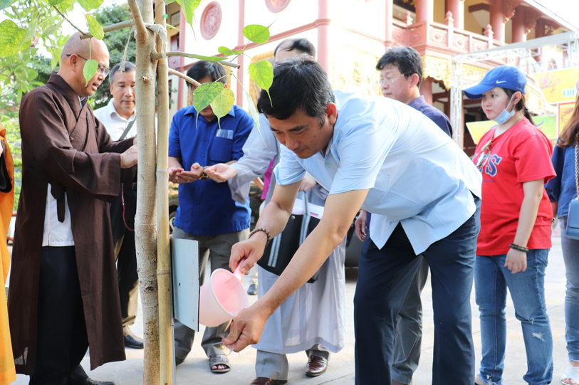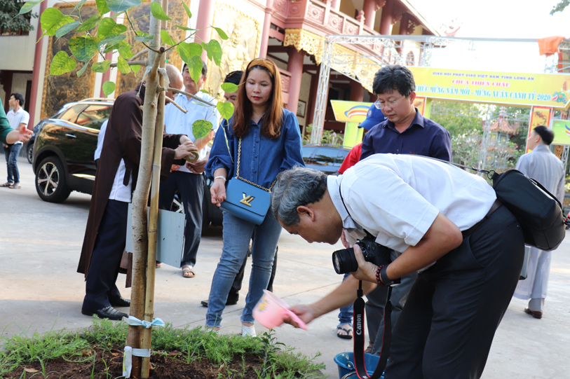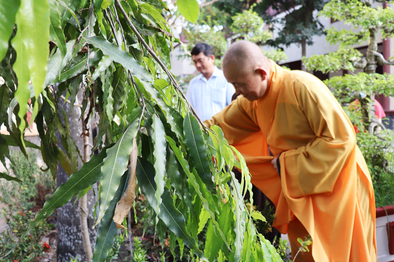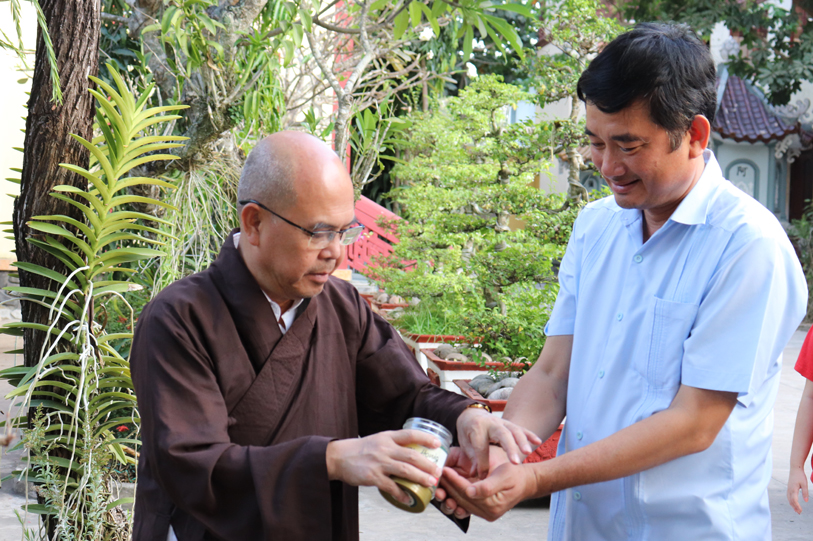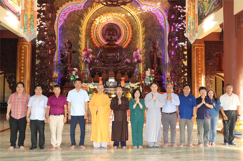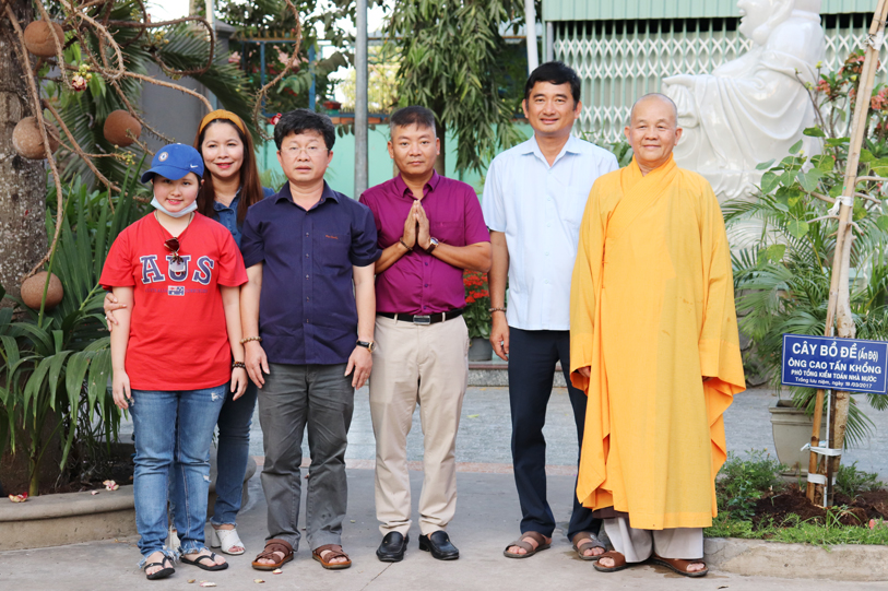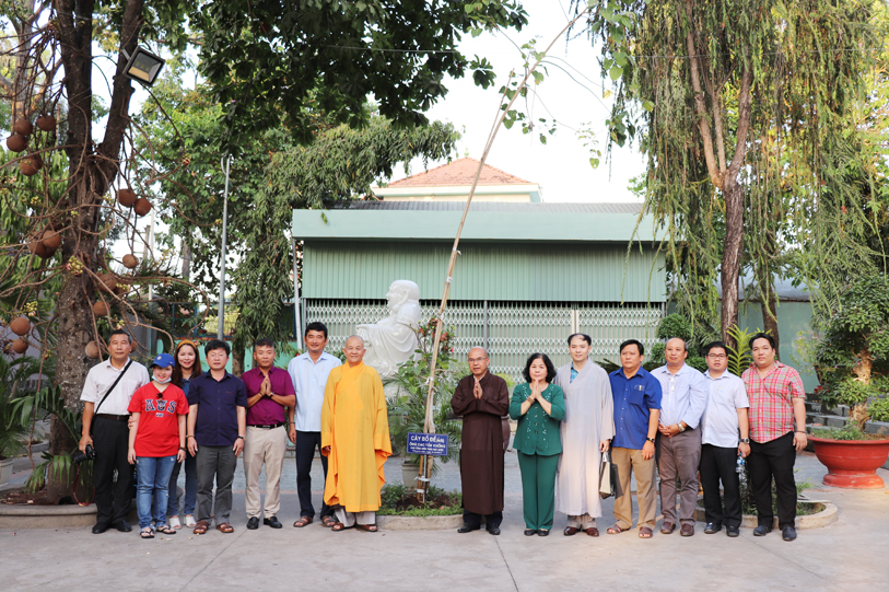 Tiếp đón đoàn có HT. Thích Minh Thiện- UVHĐTSTƯ, Phó Ban Hoằng Pháp trung ương, Trưởng Ban Trị sự GHPGVN tỉnh Long An, Trụ trì chùa Thiên Châu; Ông Phạm Văn Cảnh- Phó Chủ Tịch tỉnh Long An.
