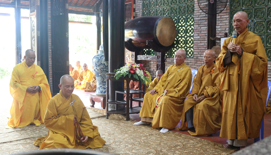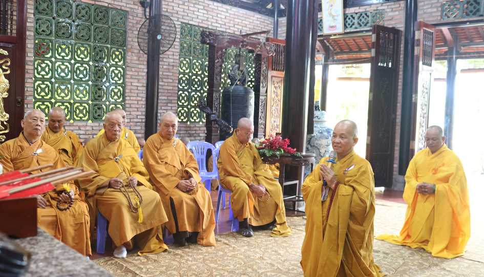 Kế tiếp, Hòa thượng Thích Thiện Huệ – CM BTS GHPGVN Tỉnh Long An, đã từ bi ban lời đạo từ, sách tấn, khuyến tu chư Hành giả An cư trong ba tháng, cố gắng tự giác và tinh tấn, lập thành công đức viên mãn Tịnh nghiệp Đạo tràng.