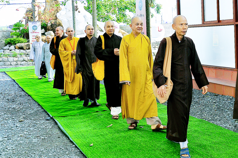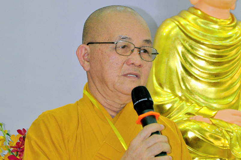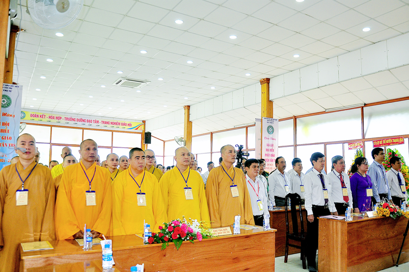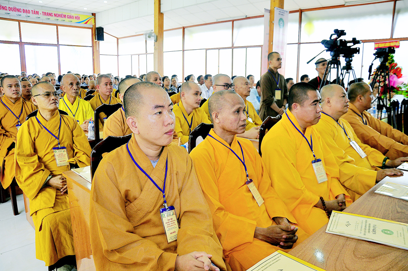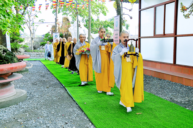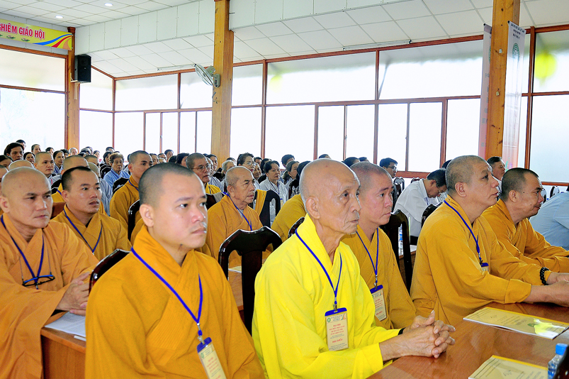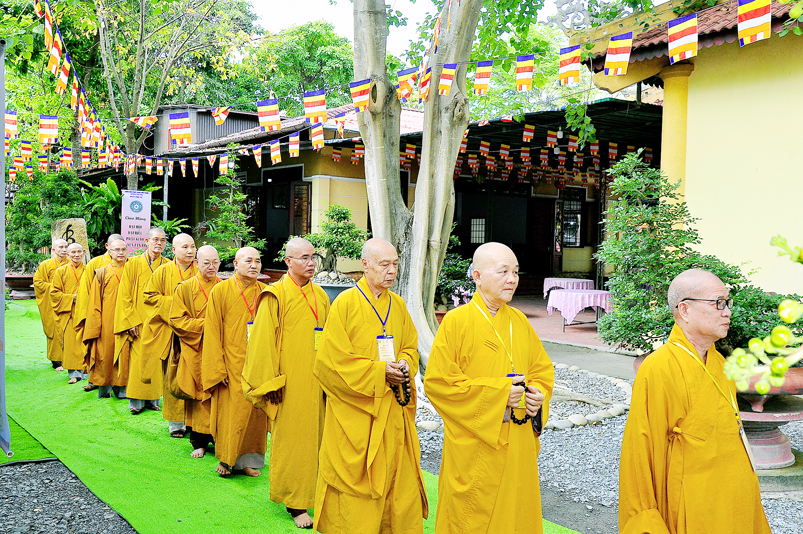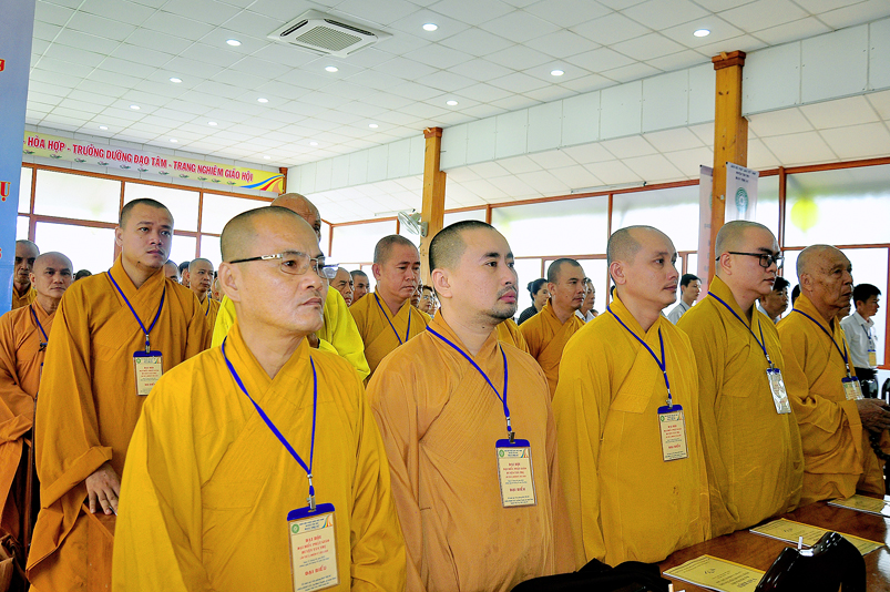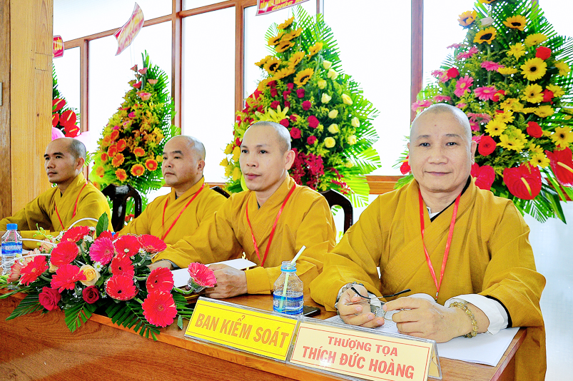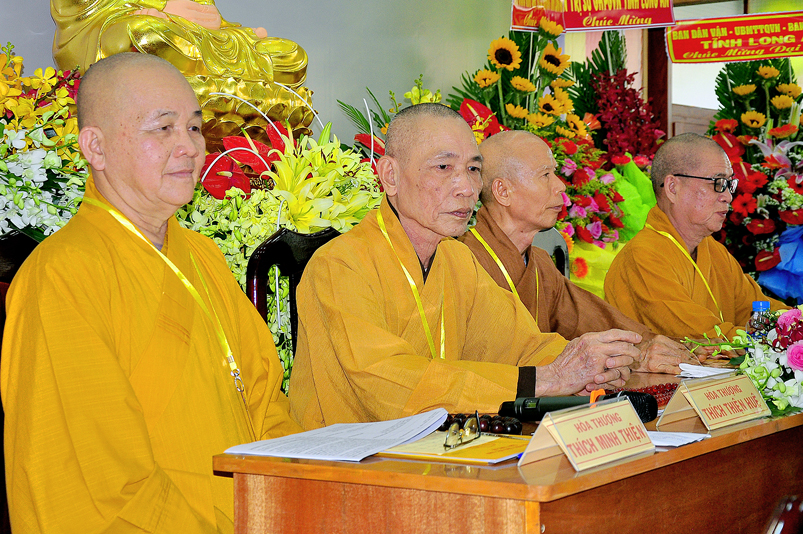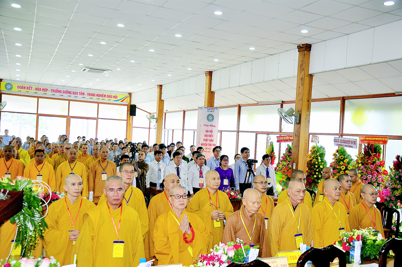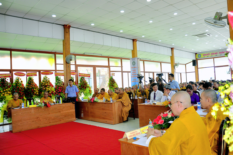 Dưới sự chứng minh gia hộ của Tam Bảo, trong không khí trang nghiêm thanh tịnh, đầy niềm hân hoan vô biên của toàn thể Đại biểu, thay mặt Ban tổ chức Đại hội, Hoà thượng long trọng tuyên bố Khai mạc Đại hội.