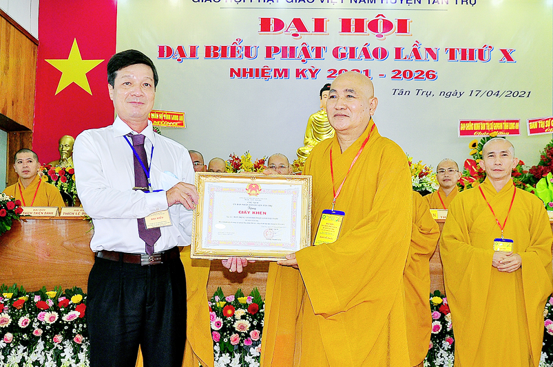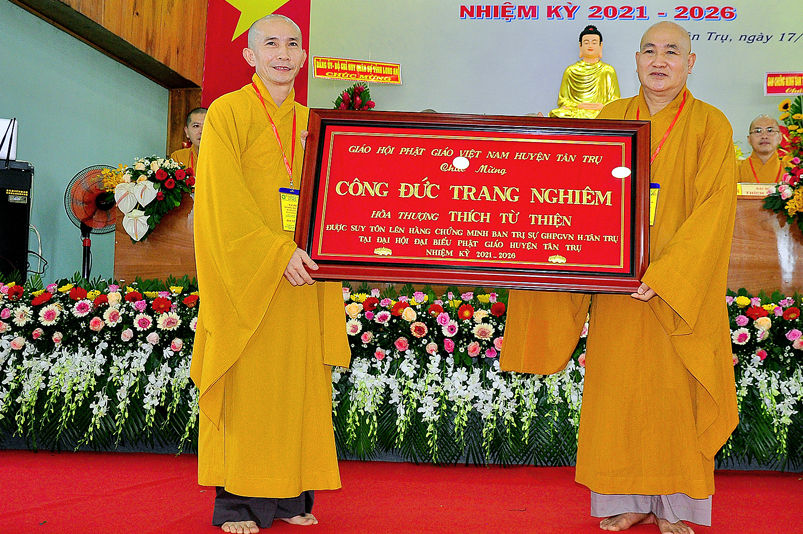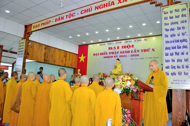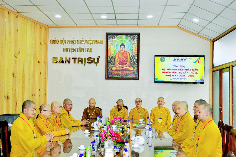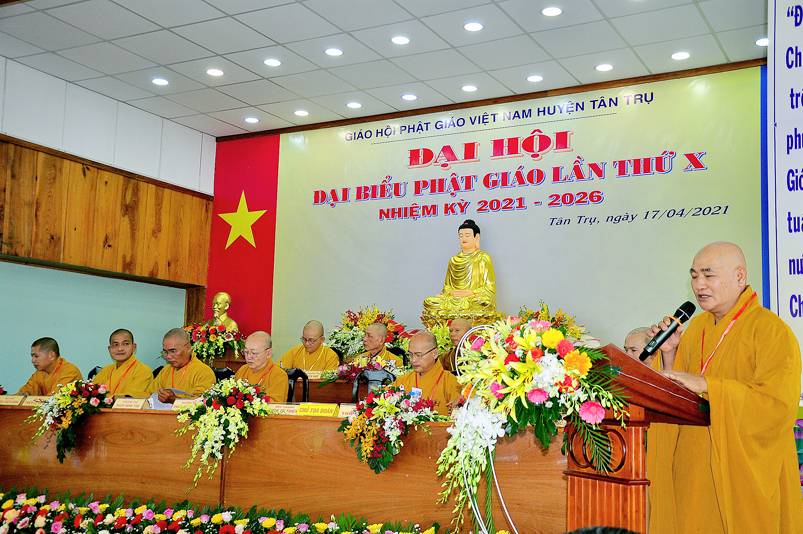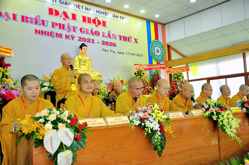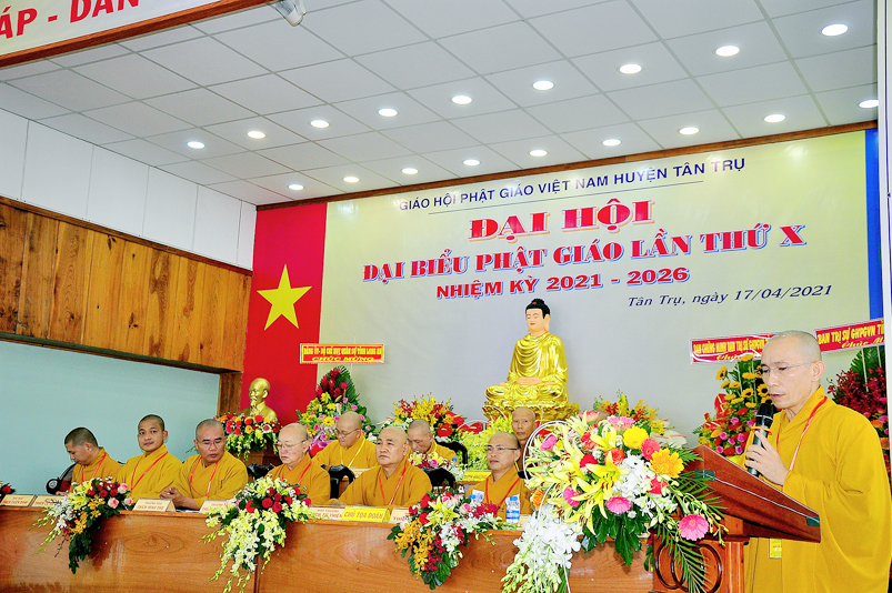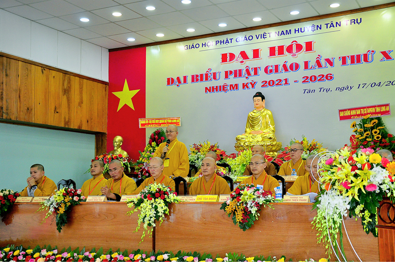 Đại hội Đại biểu Phật giáo huyện Tân Trụ lần thứ X (2021 – 2026) trang nghiêm, trọng thể trong tinh thần đoàn kết hòa hợp đã khẳng định sự phát triển vững mạnh theo phương châm phụng sự: “Đạo pháp – Dân tộc – Chủ nghĩa xã hội” .