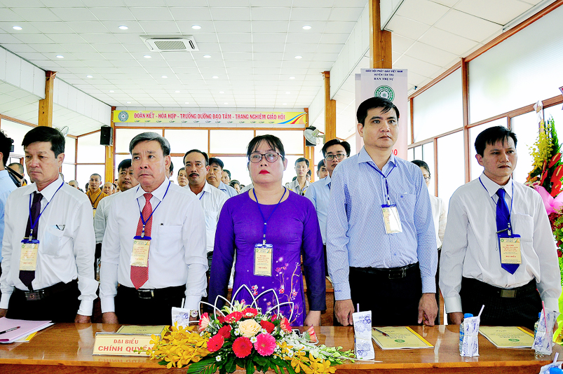 có : Ông Công Hoàng Bạch – Phó ban Dân Vân tỉnh Uỷ tỉnh Long An; Bà Nguyễn Thị Ngọc Cẩm – Uỷ viên thường trực MTTQVN tỉnh; Ông Nguyễn Văn Mưng – Trưởng Ban Tôn giáo tỉnh; Thượng tá Trần Văn Linh – Chủ nhiệm Chính Trị Bộ Chỉ huy Quân sự tỉnh; Ông Trịnh Phước Trung – Phó Chủ tịch UBND huyện; Ông Trần Minh Đạt – Trưởng Phòng Nội vụ huyện; Ông Lê Văn Trường – Phó Trưởng Ban Dân Vận huyện Uỷ; Ông Huỳnh Tấn Phương – Phó Chủ tịch MTTQ huyện; Ông Đoàn Minh Hùng – Chủ tịch Hội Cựu Chiến binh huyện; Bà Trương Thị Tuyết Mai – Chủ tịch MTTQVN thị trấn Tân Trụ; Thượng tá Nguyễn Thanh Tuân – Chính trị viên Ban Chỉ huy quân sự huyện; ông Trần Hồng Phong – Bí thư kiêm Chủ tịch UBND xã Nhựt Ninh Ngoài các vị lãnh đạo Ban tổ chức cũng vinh dự được đón tiếp các vị nguyên lãnh đạo đã đến chúc mừng và tham dự đại hội như: Ông Trần Hồng Có – Nguyên Chủ tịch HĐND huyện Tân Trụ, Ông Nguyễn Văn Chí – Nguyên Trưởng Công an huyện Tân Trụ, Ông Trần Văn Nhỏ – Nguyên Bí thư xã Nhựt Ninh và quý thiện nam tín nữ Phật tử đã về tham dự và hỗ trợ cho Đại hội.