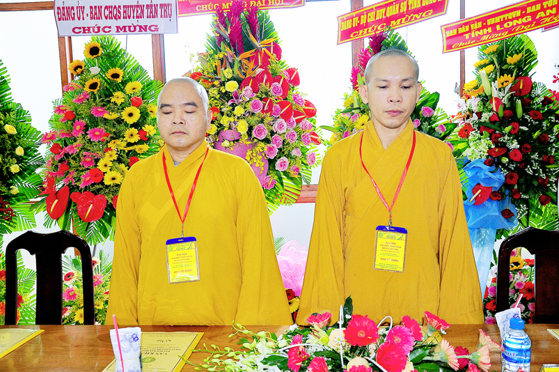 Quang lâm chứng minh Đại hội có sự hiện diện của Hòa thượng Thích Thiện Huệ, Hòa thượng Thích Huệ Hồng- Đồng Chứng minh Ban Trị sự GHPGVN tỉnh Long An; Hòa thượng Thích Minh Thiện- Ủy viên HĐTS, Phó Trưởng ban Hoằng pháp TƯ, Trưởng Ban Trị sự GHPGVN tỉnh Long An; Thượng tọa Thích Quảng Tâm- Thượng tọa Thích Quảng Tâm: Ủy viên Hội đồng Trị sự, Phó Trưởng ban Thường trực Ban Trị sự GHPGVN tỉnh Long An; Hoà thượng Thích Huệ Vân – Chứng minh Ban Trị sự GHPGVN huyện Tân Trụ, Hoà thượng Thích Từ Thiện- Uỷ viên Ban Trị sự tỉnh, Trưởng Ban Trị sự GHPGVN huyện Tân Trụ; Chư Tôn đức Thường trực Ban Trị sự GHPGVN tỉnh Long An, Chư tôn đức các Ban Trị sự GHPGVN huyện, thị, thành phố trong Tỉnh; cùng Chư tôn đức Tăng Ni trụ trì các tự viện trong huyện.