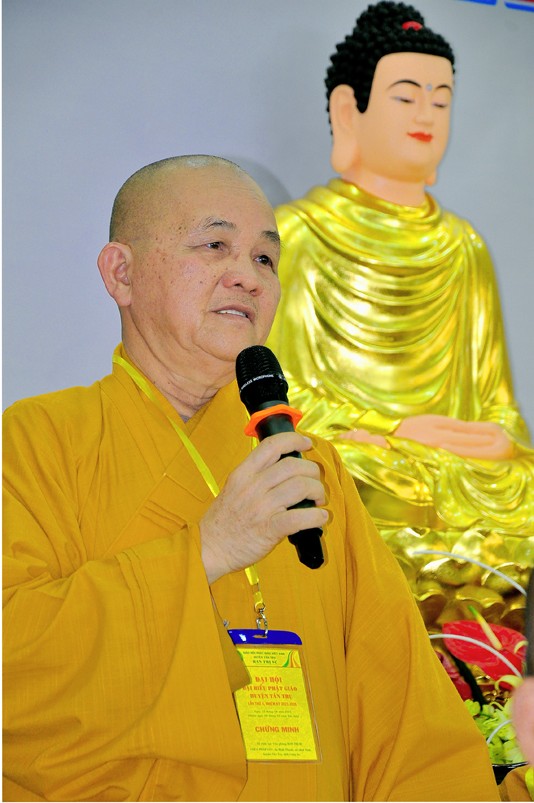 Ông nhấn mạnh “Trước những thành tựu và nhân dân trong huyện đã nổ lực đạt được trong những thành quả đó không thể không nói đến những sự đóng vô cùng to lớn của Tăng Ni Phật tử huyện nhà.