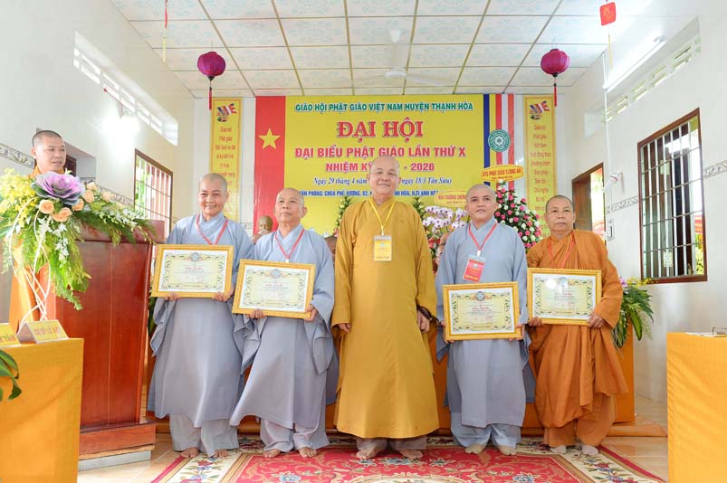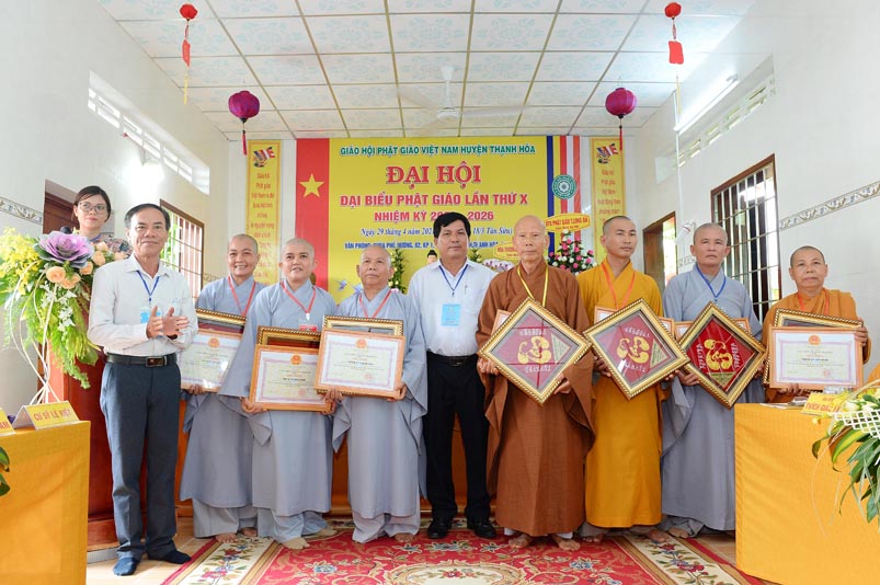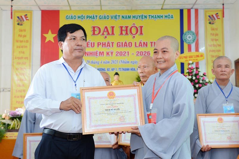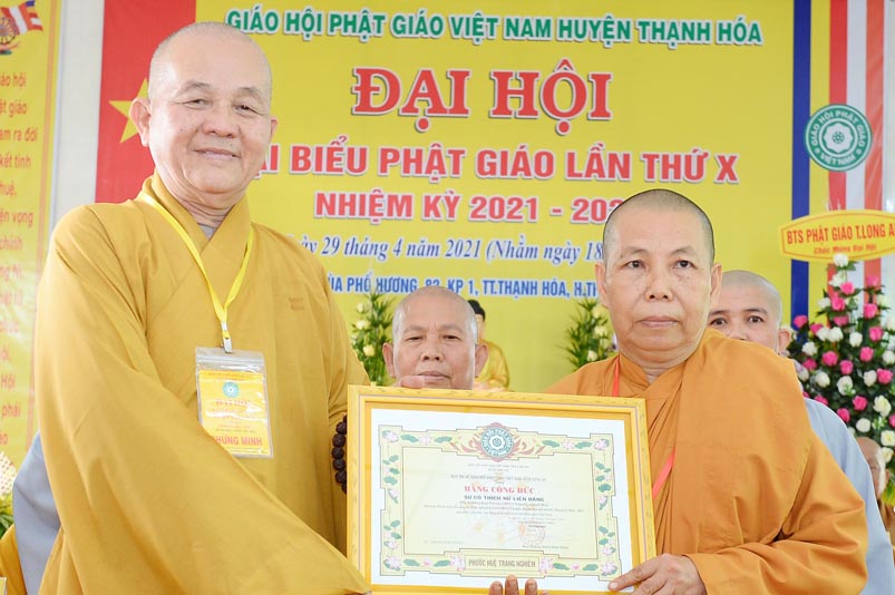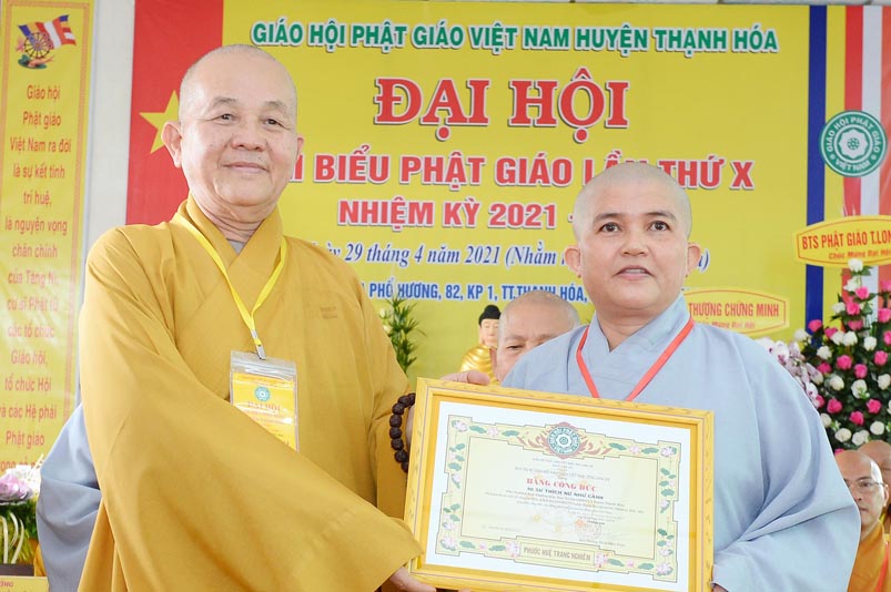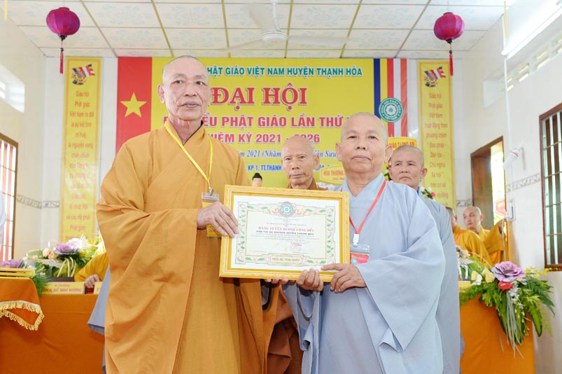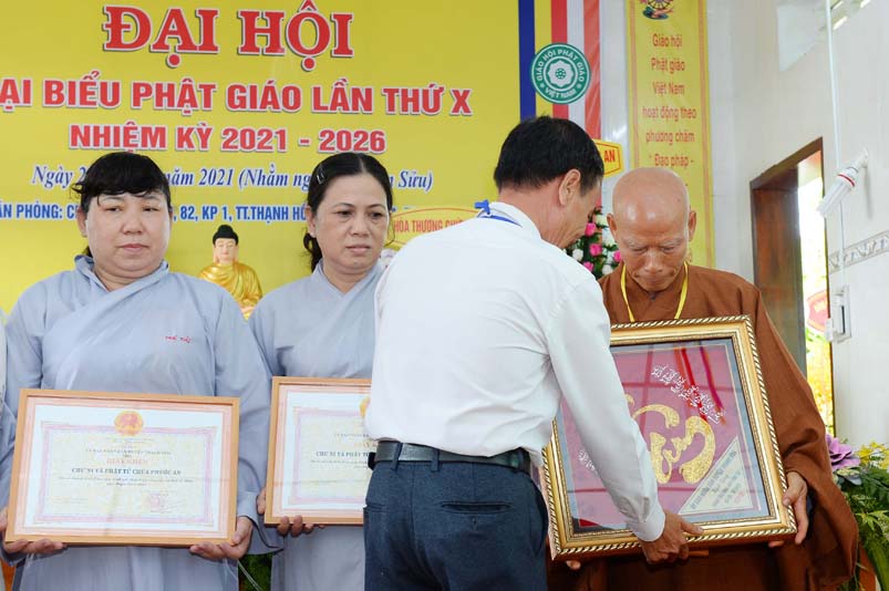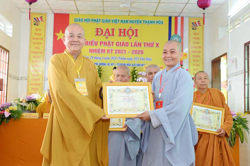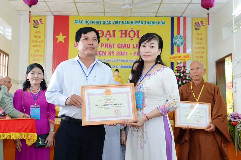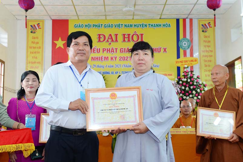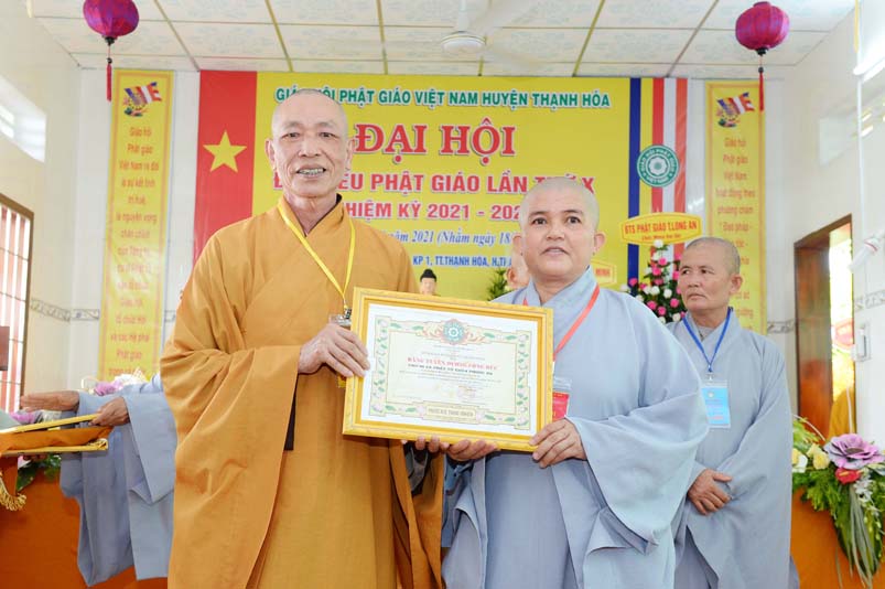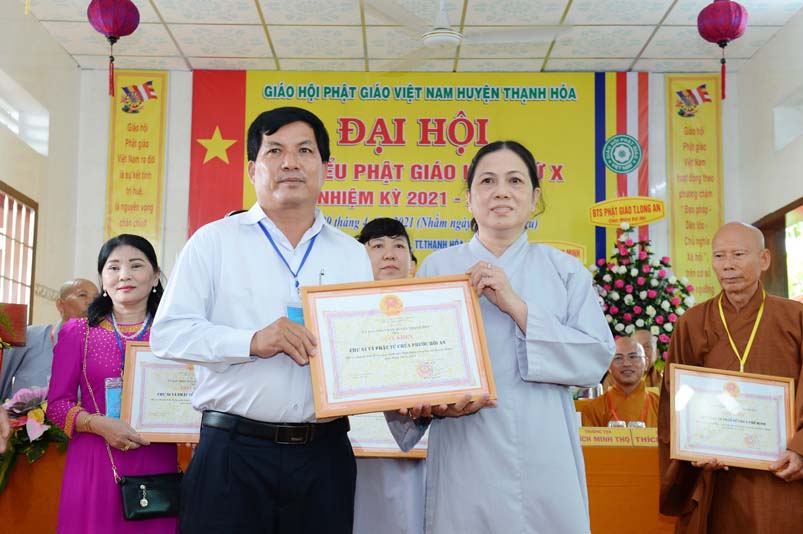 Dịp này, Thường trực BTS Phật giáo tỉnh và UBND tỉnh Long An đã trao tặng bằng tuyên dương công đức bằng khen cho tập thể, cá nhân hoàn thành xuất sắc nhiệm vụ công tác Phật sự trong nhiệm kỳ 2016 – 2021, để khích lệ đến chư Tăng Ni. Đồng thời, Ủy ban Nhân dân huyện Thạnh Hoá cũng trao tặng bằng khen cho tập thể, BTS. GHPGVN huyện Thạnh Hoá, nhiều cá nhân có thành tích tiêu biểu trong việc hướng dẫn tín đồ sống “Tốt đời, đẹp đạo”, những đóng góp tích cực, hoạt động Phật sự xuất sắc trong nhiệm kỳ cũ, góp sức vào sự nghiệp đại đoàn kết toàn dân tộc.