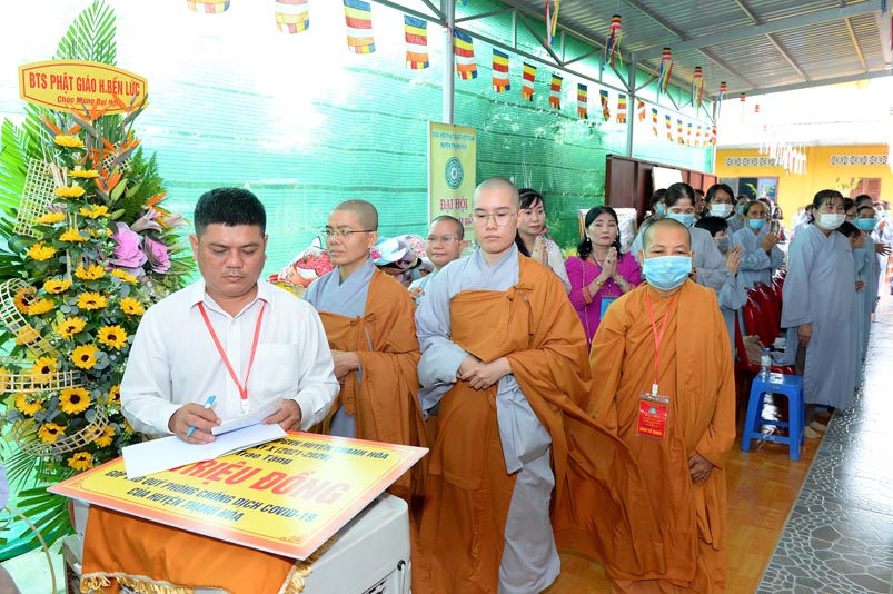 Sau phát biểu khai mạc Đại Hội, Ni Trưởng Thích Nữ Như Hương- Trưởng Ban Trị sự đã đón nhận nhiều lẵng hoa chúc mừng từ Chư Tôn đức Ban Chứng minh, Ban Thường trực Ban Trị sự tỉnh, quý lãnh đạo tỉnh Long An, huyện Thạnh Hoá trao tặng.