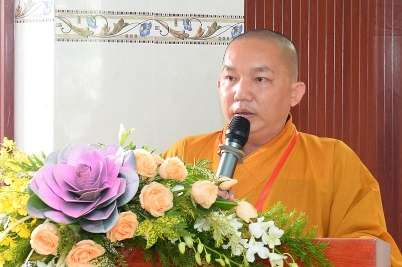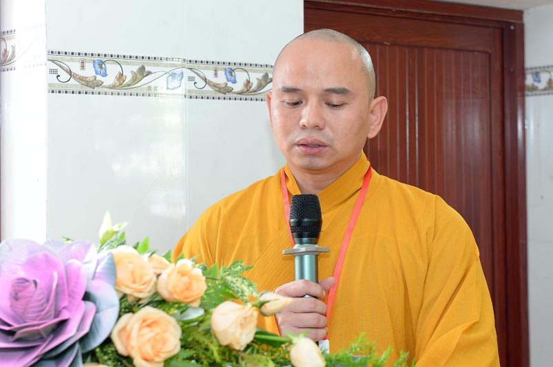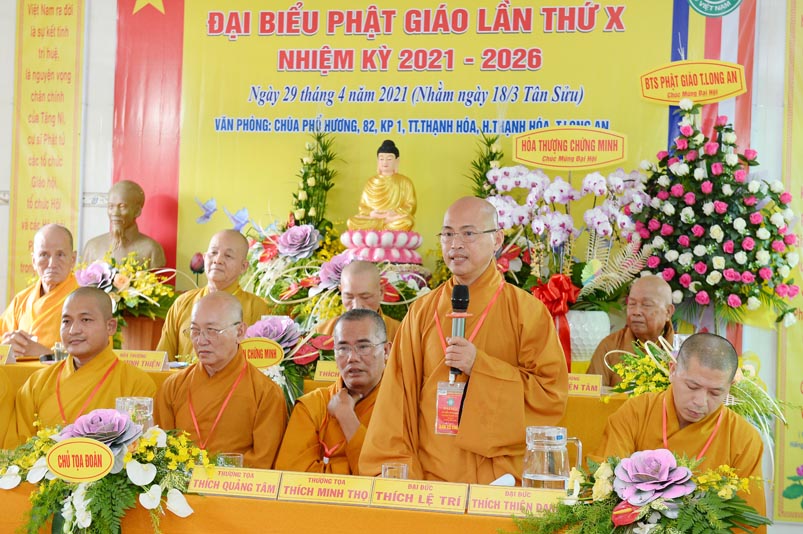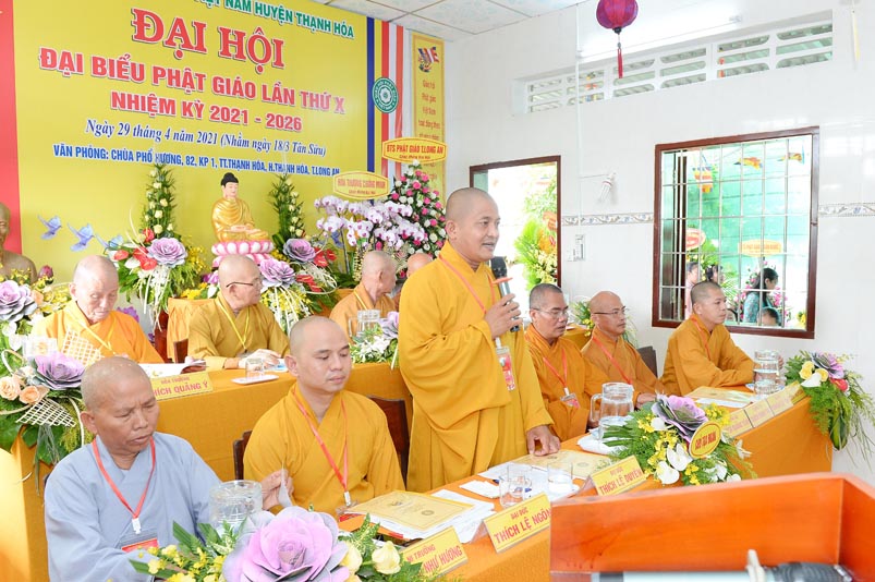 Đại đức Thích Thích Lệ Ngôn – Trưởng Ban Trị sự Giáo hội Phật giáo huyện Thạnh Hoá thay mặt Ban Tổ chức phát biểu cảm tạ tri ân đến Chư Tôn đức, quý lãnh đạo Chánh quyền, Đại biểu và bế mạc Đại hội.