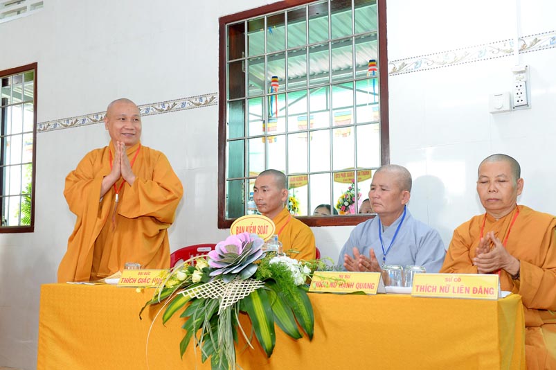 Với chủ đề “Kỷ cương – Trách nhiệm – Đoàn kết – Phát triển” của đại hội ông mong rằng Tân BanTrị sự là những tăng Ni trẻ đầy nhiệt huyết sẽ tiếp tục kế thừa những thành quả của thế hệ đi trước tiếp tục phát triển Phật giáo huyện nhà.