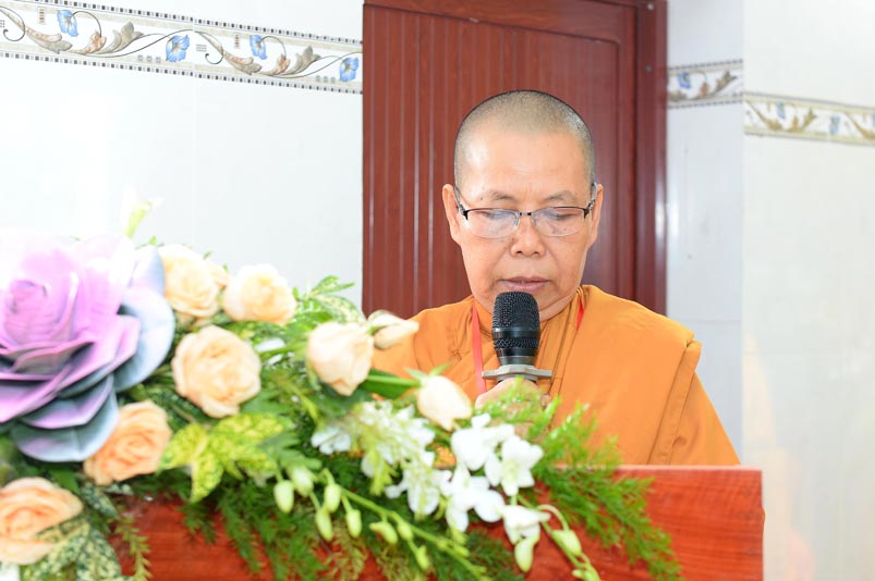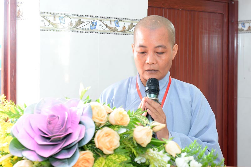 Sau nghi thức truyền thống niệm Phật cầu gia bị, chào Quốc Kỳ, Đạo kỳ, Ni Trưởng Thích Nữ Như Hương- Trưởng Ban Trị sự GHPGVN huyện Thạnh Hóa, tuyên đọc diễn văn khai mạc Đại hội.