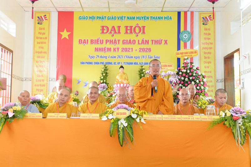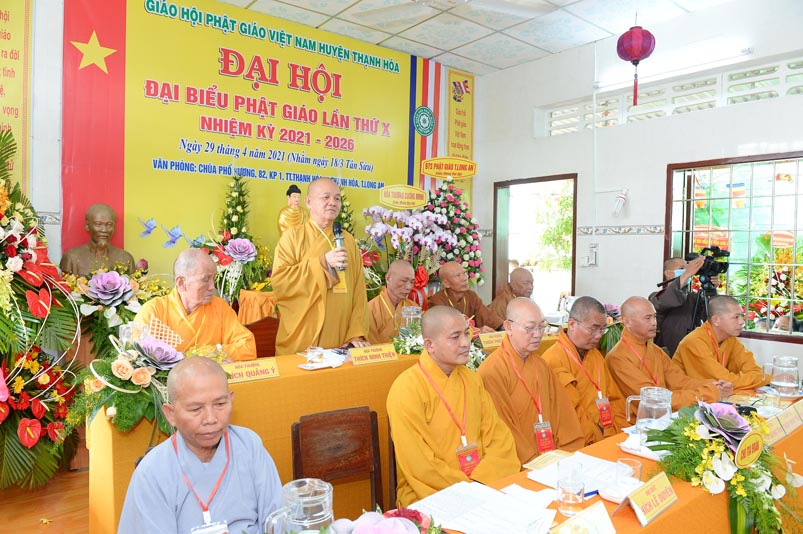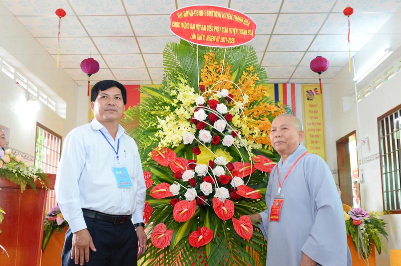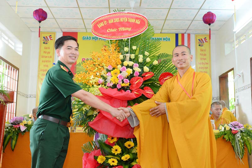 Thay mặt Đảng uỷ, HĐND, UBND, UBMTTQVN huyện Ông Nguyễn Minh Trang- Phó Chủ tịch UBMTTQVN Thạnh Hoá, Ông đánh giá cao kết quả Ban Trị Sự Giáo hội Phật giáo Viêt Nam huyện Thạnh Hoá đã làm được theo báo cáo tổng kết nhiệm kỳ. Thay mặt huyện Ủy, HĐND, UBND, UBMTTQ Ông ghi nhận những đóng góp to lớn này trong công tác từ thiện xã hội, khuyến học, khuyến tài, xây dựng quê hương.