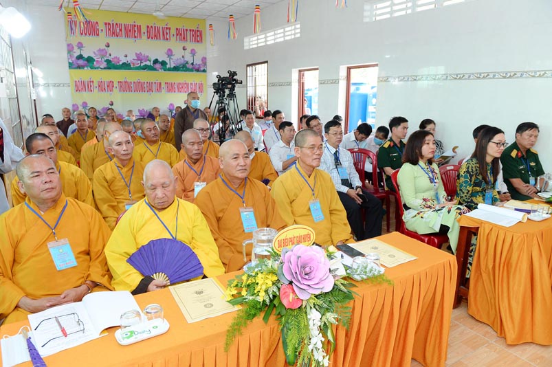 Đại hội được vinh dự cung nghinh sự quang lâm chứng minh của Hòa thượng Thích Thiện Huệ- Chứng minh Ban Trị sự GHPGVN tỉnh Long An; Hòa Thượng Thích Huệ Hồng- Chứng minh Ban Trị sự GHPGVN tỉnh Long An. Hòa Thượng Thích Thiện Tâm- Phó Ban Trị sự GHPGVN tỉnh Long An; Hòa Thượng Thích Minh Thiện – Ủy viên Hội đồng Trị sự, Phó trưởng Ban Hoằng pháp trung ương, Trưởng Ban Trị sự GHPGVN tỉnh Long An, Trưởng Ban chỉ đạo tổ chức Đại hội; Thượng Tọa Thích Quảng Tâm- Uỷ viên HĐTSTƯ,Phó ban Thường trực Ban Trị sự GHPGVN tỉnh Long An, Chư tôn đức trong ban thường trực GHPGVN tỉnh Long An, Chư tôn đức Tăng Ni các Ban Trị sự GHPGVN các huyện, thị xã, Thành phố, Chư tôn đức Tăng Ni trụ trì các tự viện trong tỉnh đồng về tham dự.