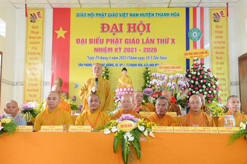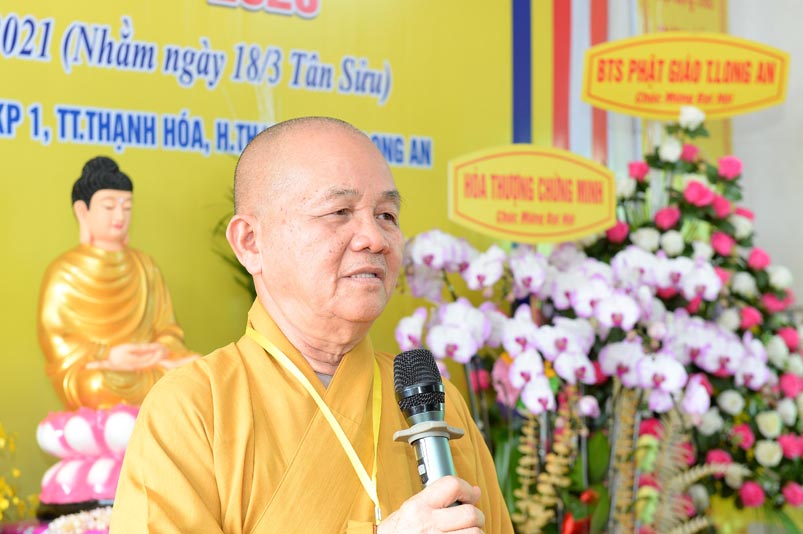 Đạo từ tại Đại hội, Hòa thượng Thích Minh Thiện – Ủy viên Hội đồng Trị sự, Phó trưởng Ban Hoằng pháp trung ương, Trưởng Ban Trị sự GHPGVN tỉnh Long An đã chỉ dạy: “Đại hội Phật giáo của huyện Thạnh Hóa diễn ra trong những ngày kỷ niệm trọng đại của Đất nước như 46 năm, ngày thống nhất Đất nước( ngày 30 tháng 04 năm 1975- 30 tháng 04 năm 2021).