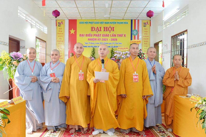 Phát biểu nhận nhiệm vụ của Tân Trưởng Ban Trị sự GHPGVN huyện Thạnh Hóa, Đại đức Thích Lệ Ngôn phát nguyện trược Đại hội: Tập thể Ban Trị sự GHPGVN huyện Thạnh Hóa nhiệm kỳ 2021-2026 xin nhận nhiệm vụ trước Đại hội. Các thành viên xin nguyện trên dưới một lòng, đoàn kết, hòa hợp để chung lo Phật sự, nguyện đem hết tâm lực, trí lực phụng sự cho Đạo pháp- Dân tộc và nhất là hoàn thành tốt mọi Phật sự mà các cấp giáo hội tin tưởng, giao phó. Thực hiện nghiêm túc phương hướng Phật sự mà Đại hội đã đề ra. Ưu tiên triển khai công tác từ thiện xã hội, phát triển ngành Hoằng pháp và lễ hội văn hóa nhằm xây dựng lối sống “tốt đạo – đẹp đời” và truyền bá niềm tin chánh tín trong quần chúng.
