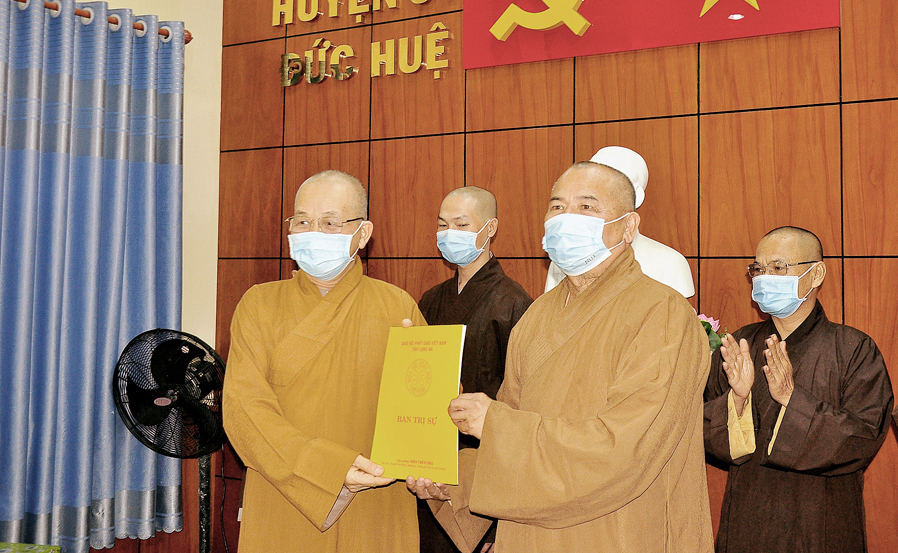 Ban Trị sự GHPGVN huyện Đức Huệ nhiệm kỳ I (2021 – 2026) gồm: Ban Chứng minh 3 vị; Ban Trị sự 08 vị.