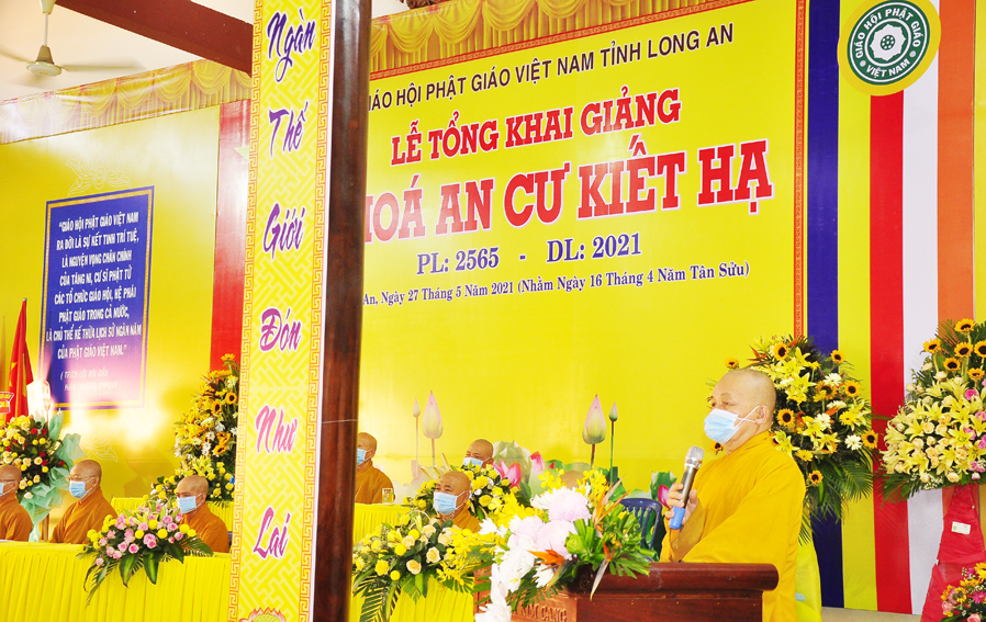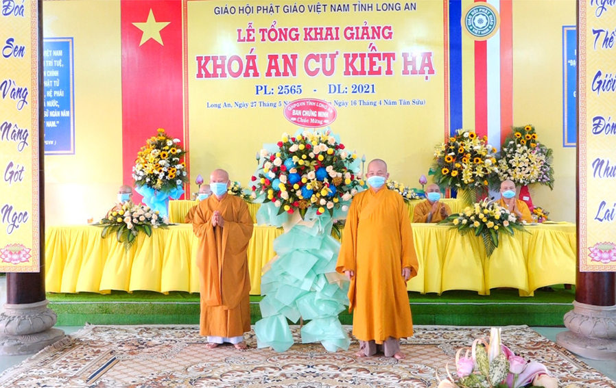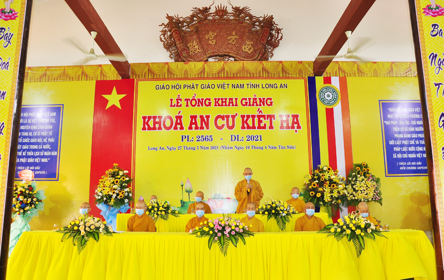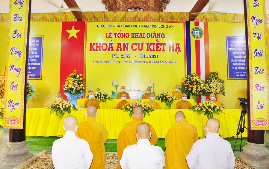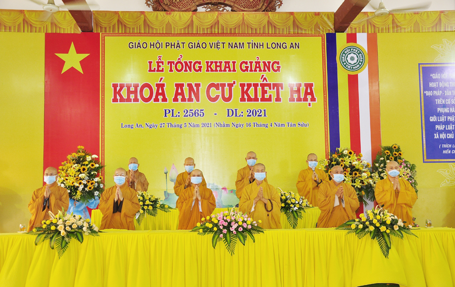 Thực hiện theo hướng dẫn của Hội đồng Trị sự Trung ương GHPGVN tại Thông bạch số 128/TB.HĐTS ngày 02/4/2021 về việc tổ chức An cư Kết hạ PL: 2565. Sáng ngày 27/05/2021 (16/04/Tân Sửu) Thường trực Ban trị sự GHPGVN tỉnh Long An long trọng tổ chức lễ tổng Khai giảng Khóa An cư cho 11 trú xứ An cư tỉnh Long An.