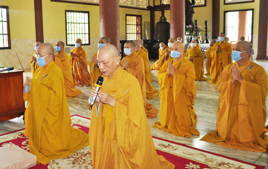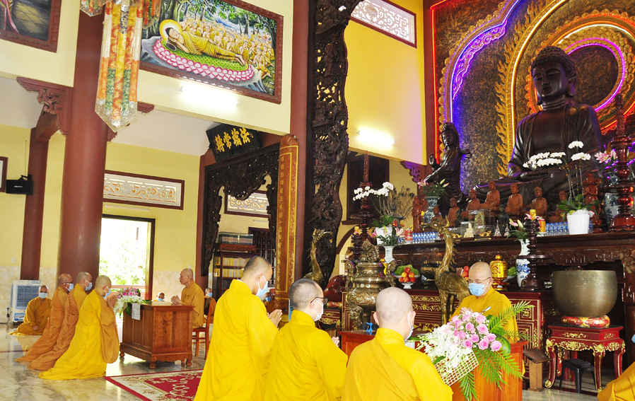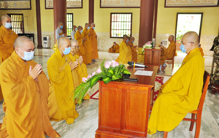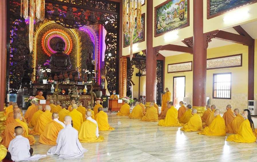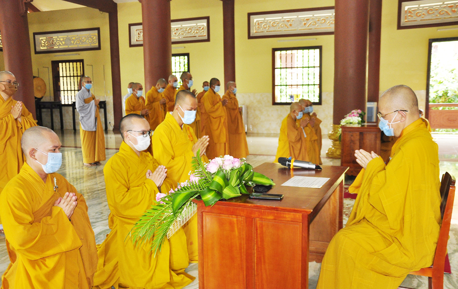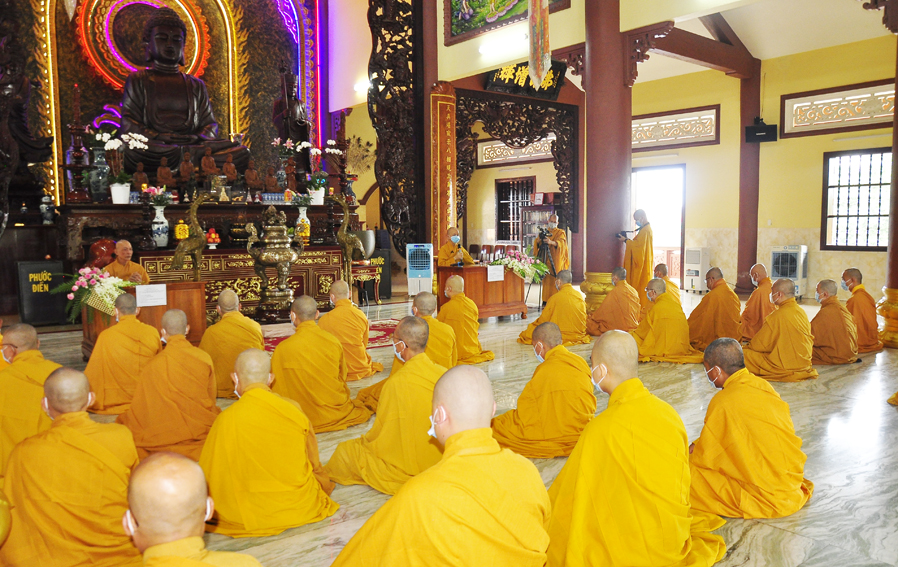 Do dịch bệnh COVID-19 diễn biến phức tạp, Lễ Tổng Khai giảng An cư Kiết hạ năm nay được tổ chức nội bộ, giới hạn số người tham dự, tuân thủ nghiêm ngặt các quy định về phòng chống dịch bệnh.
