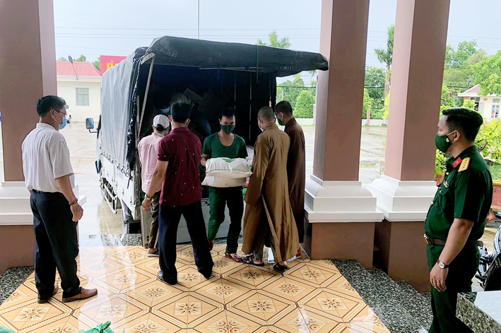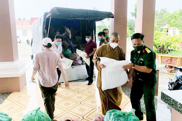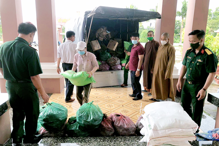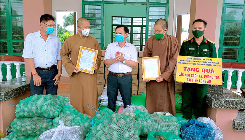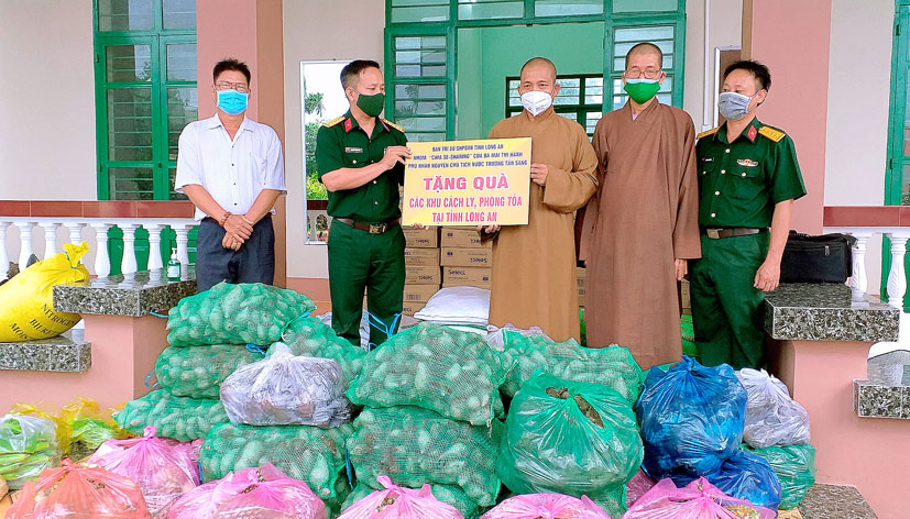 Đoàn đã trao tặng 200 thùng mì tôm, 200 kg gạo, 100 kg đường và khoảng 1,3 tấn khoai lang và nhiều nhu yếu phẩm khác. Tổng trị giá 30 triệu đồng do Nhóm “Chia sẻ – Sharing” của bà Mai Thị Hạnh – phu nhân của Nguyên Chủ tịch nước Trương Tấn Sang quyên góp ủng hộ, nhằm góp phần bổ sung dinh dưỡng, làm phong phú bữa ăn cho cán bộ chiến sĩ, lực lượng tham gia chống dịch và những người đang thực hiện cách ly tại 02 khu cách ly tập trung của huyện. Đây là hoạt động thường siêng của Thường trực Ban Trị sự GHPGVN tỉnh Long An trong chương trình phòng chống dịch của tỉnh nhà. Qua đó, phần nào giảm áp lực về kinh phí hoạt động của Khu cách ly, cũng như chia sẽ với những khó khăn của người dân đang thực hiện cách ly.