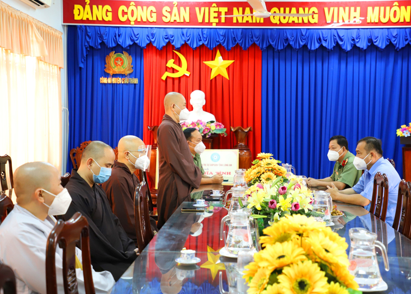 Tại Ủy ban Nhân dân và Công an huyện Châu Thành: Hiện diện gồm có: Thượng tọa Thích Đức Hoàng – Phó Trưởng ban BTS GHPGVN tỉnh; Sư cô Thích nữ Diệu Huệ – Phó Trưởng ban BTS GHPGVN huyện; Ông Nguyễn Văn Khải – Chủ tịch UBND huyện và Thượng tá Lâm Văn Theo – Phó Trưởng Công an huyện.