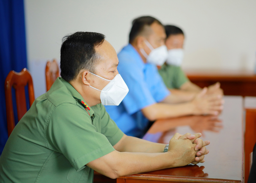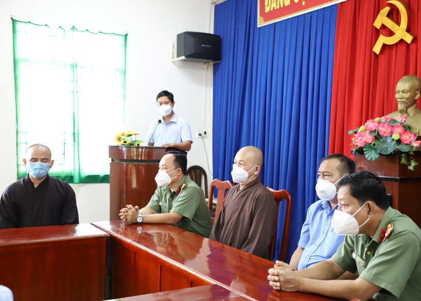 Tại Công an huyện Đức Huệ: Hiện diện gồm có Đại đức Thích Thiện An – Trưởng ban BTS GHPGVN huyện; Ông Võ Văn Á – Thường vụ Huyện Ủy, Trưởng Ban Dân vận, Chủ tịch MTTQVN huyện; Ông Lê Văn Tài – Phó Trưởng Công an huyện.