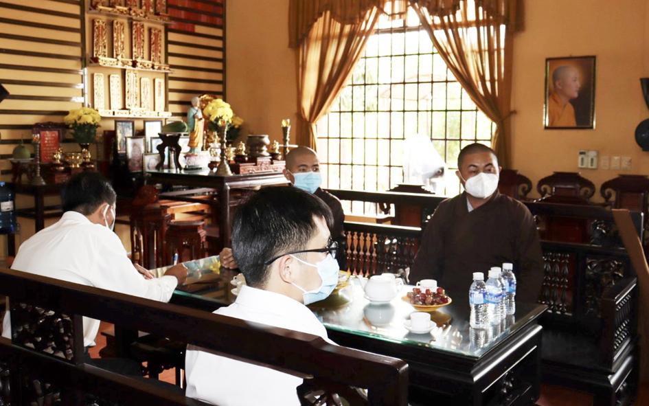 Tiếp đón phái đoàn có Đại đức Thích Trí Minh – Uỷ viên BTS GHPGVN tỉnh Long An – Trưởng BTS GHPGVN huyện Cần Đước – Trụ trì Chùa Phật Quang, Đại đức Thích Quảng Giác – Phó BTS GHPGVN huyện Cần Đước, Đại đức Thích Nguyên Thọ – Phó Chánh Thư ký BTS GHPGVN huyện Cần Đước, Đại đức Thích Hoằng Nghệ – Phó Chánh Văn phòng BTS GHPGVN huyện Cần Đước.