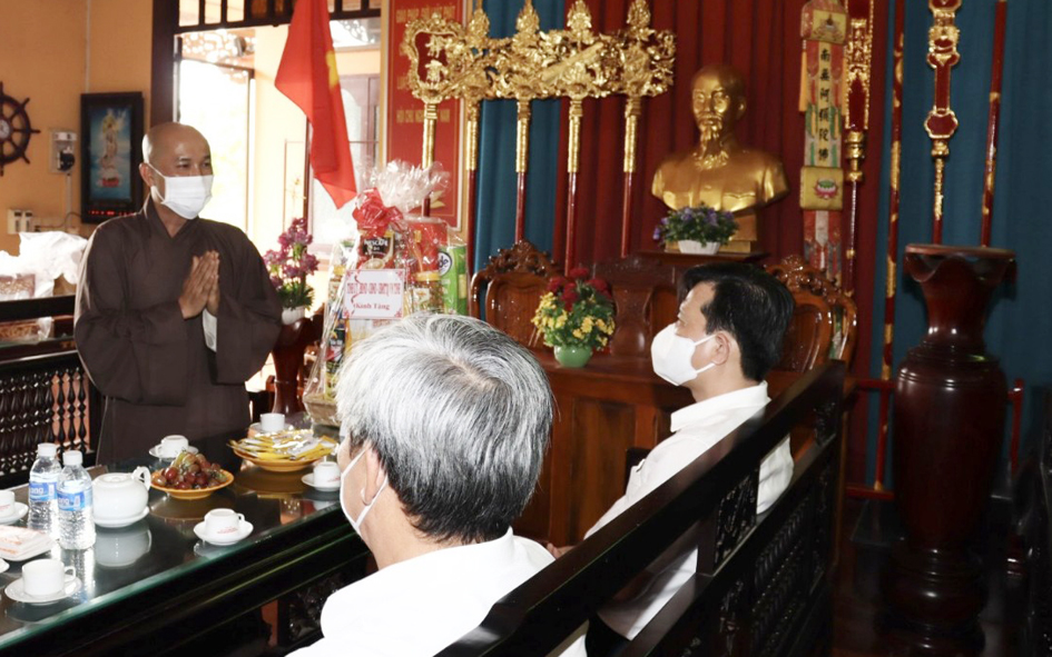 Tháp tùng cùng đoàn có ông Công Hoàng Bạch – Phó Trưởng Ban Dân vận Tỉnh ủy, ông Nguyễn Văn Mưng – Trưởng Ban Tôn giáo – Sở Nội vụ tỉnh Long An đồng thân lâm đến Chùa Phật Quang, ấp Xóm Chùa, xã Tân Lân, huyện Cần Đước, tỉnh Long An, để vấn an sức khỏe Chư tôn đức Thường trực BTS GHPGVN Huyện Cần Đước sau thời gian thực hiện chỉ thị giản cách xã hội.
