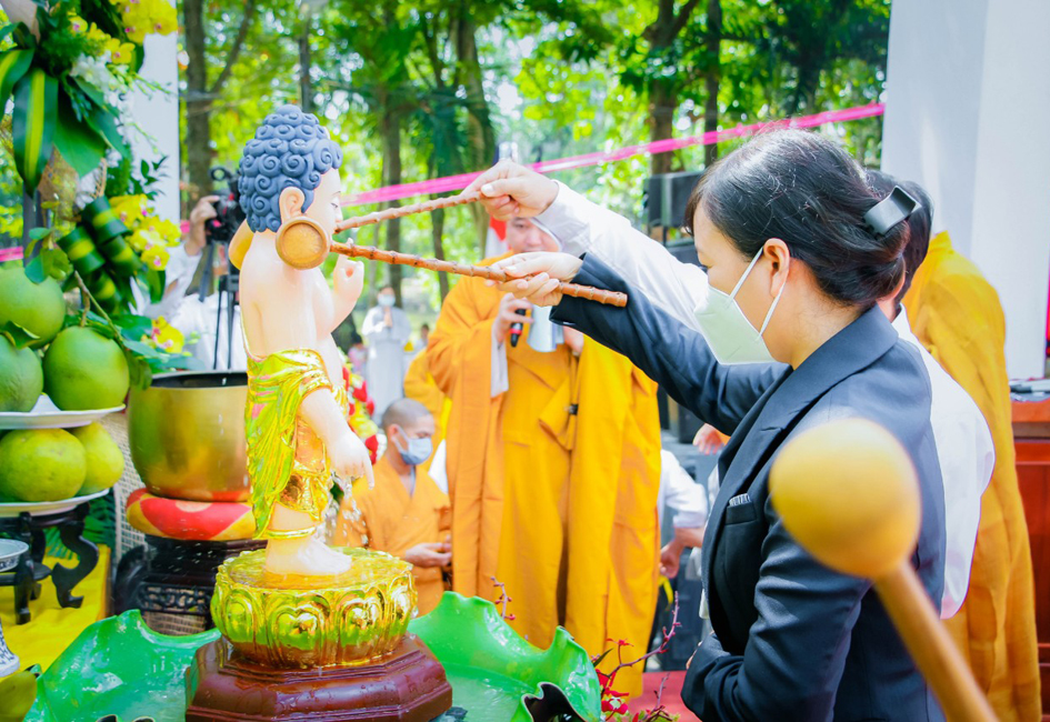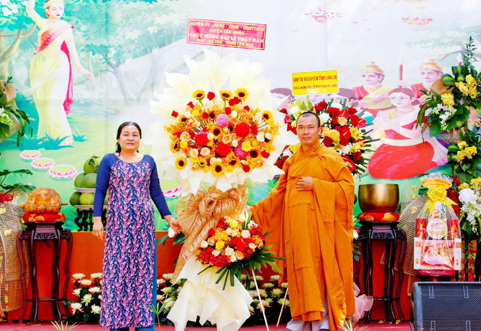 Phát biểu tại buổi lễ, Bà Đào Thị Ngọc Vui – Phó Chủ tịch UBND huyện Cần Giuộc đã khẳng định sự đồng hành của Phật giáo Việt Nam trong hơn 2.000 năm dựng nước và giữ nước; ghi nhận và đánh giá cao sự đóng góp tích cực của Phật giáo trong sự nghiệp đổi mới và phát triển của quê hương.