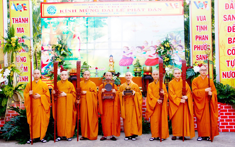 Cũng tại buổi lễ, Thượng toạ Thích Tắc Nguyên, Trưởng Ban Trị sự GHPGVN tỉnh Cần Giuộc đã đọc Diễn văn Phật đản Phật lịch 2566 của Hòa thượng Chủ tịch Hội đồng trị sự GHPGVN Trưởng lão Hoà thượng Thích Thiện Nhơn, nêu rõ sự kiện Đức Phật ra và quá trình phát triển của Phật giáo trên thế giới.