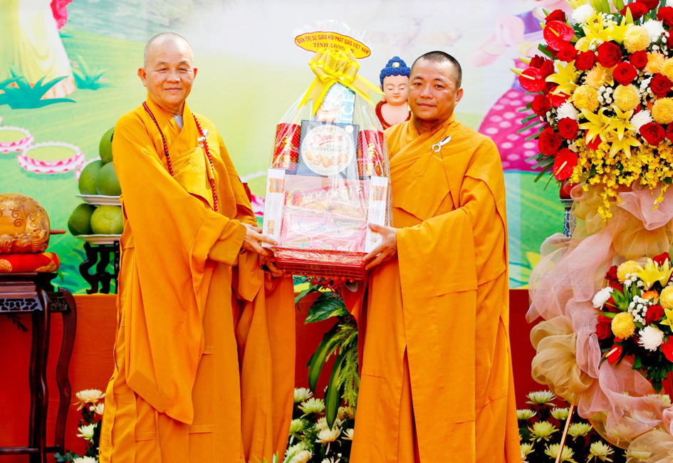 Ban tổ chức đã đón nhận nhiều lẳng hoa, phần quà của Ban Trị sự GHPGVN tỉnh và của  HĐNH, UBND, UBMTTQVN huyện Cần Giuộc, và quý ban ngành sở tại.