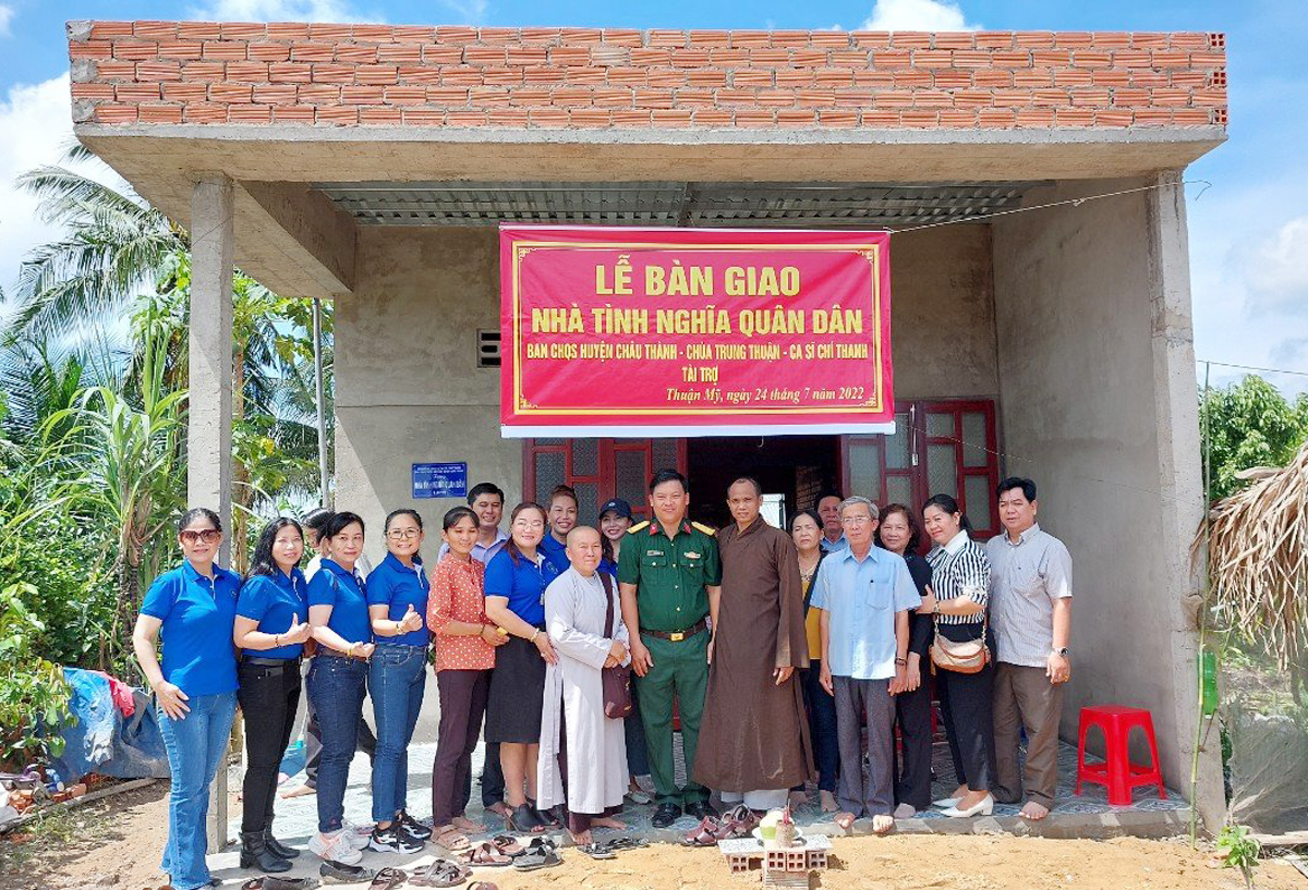 Nhân kỷ niệm 75 năm ngày Thương Binh Liệt Sĩ ( 27/7/2022 ) Ngày 24-7-2022, xã Thuận Mỹ, huyện Châu Thành , Ban Trị Sự GHPGVN huyện Châu Thành kết hợp với Ban chỉ huy Quân sự huyện Châu Thành tổ chức trao tặng nhà tình nghĩa quân dân cho chị Nguyễn Thị Kim Huyến, đang cư ngụ tại ấp Bình Thạnh I, xã Thuận Mỹ, huyện Châu Thành, tỉnh Long An.