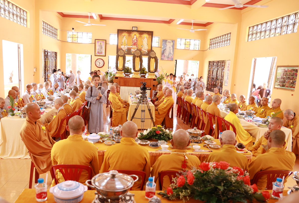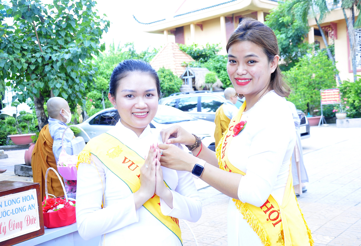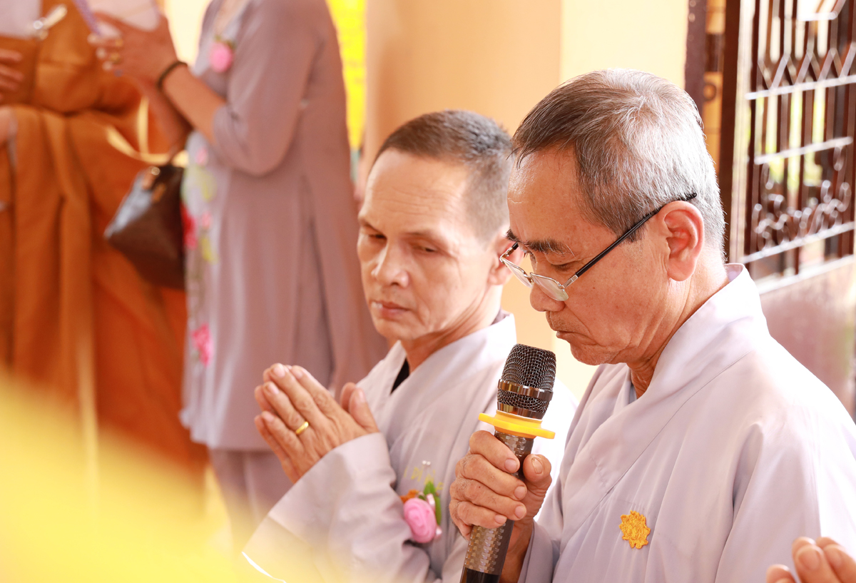 Buổi lễ trang nghiêm cung nghinh sự quang lâm chứng minh của Hòa thượng Thích Minh Thiện – Uỷ viên HĐTS – Phó Ban Hoằng Pháp TW – Trưởng BTS GHPGVN tỉnh Long An; Hòa thượng Thích Thiện Ngọc, Hòa thượng Thích Tâm Nguyên – Đồng chứng minh BTS GHPGVN huyện Cần Đước; Thượng tọa Thích Quảng Tâm – Uỷ viên HĐTS – Phó Trưởng Ban Thường trực BTS. GHPGVN tỉnh Long An, Thượng tọa Thích Đức Hoàng – Phó Trưởng BTS GHPGVN tỉnh Long An, Ni Trưởng Thích Nữ Tuệ Đăng – Phó Trưởng BTS. GHPGVN tỉnh Long An, cùng chư tôn đức Thường trực BTS. GHPGVN tỉnh Long An; Đại đức Thích Trí Minh – Uỷ viên Thường trực BTS. GHPGVN tỉnh Long An – Trưởng BTS. GHPGVN huyện Cần Đước – Trưởng Ban Trụ trì Ni viện Long Hoa, Đại đức Thích Tâm Hướng – UV BTS GHPGVN tỉnh Long An – Phó Trưởng Ban Thường trực BTS. GHPGVN huyện Cần Đước cùng chư tôn đức Tăng, Ni, trụ trì các Tự viện trong địa bàn Phật giáo huyện đồng thân lâm tham dự.