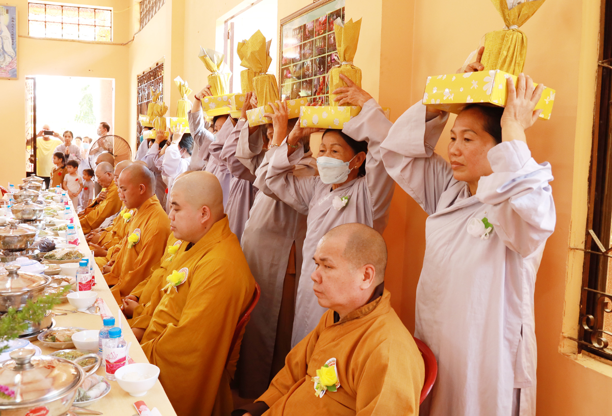 Nghi thức quá đường và dâng y ca sa kính mừng đại lễ Vu Lan đã diễn ra trang nghiêm theo nghi thức truyền thống Phật giáo góp phần cho buổi lễ thành tựu viên mãn.