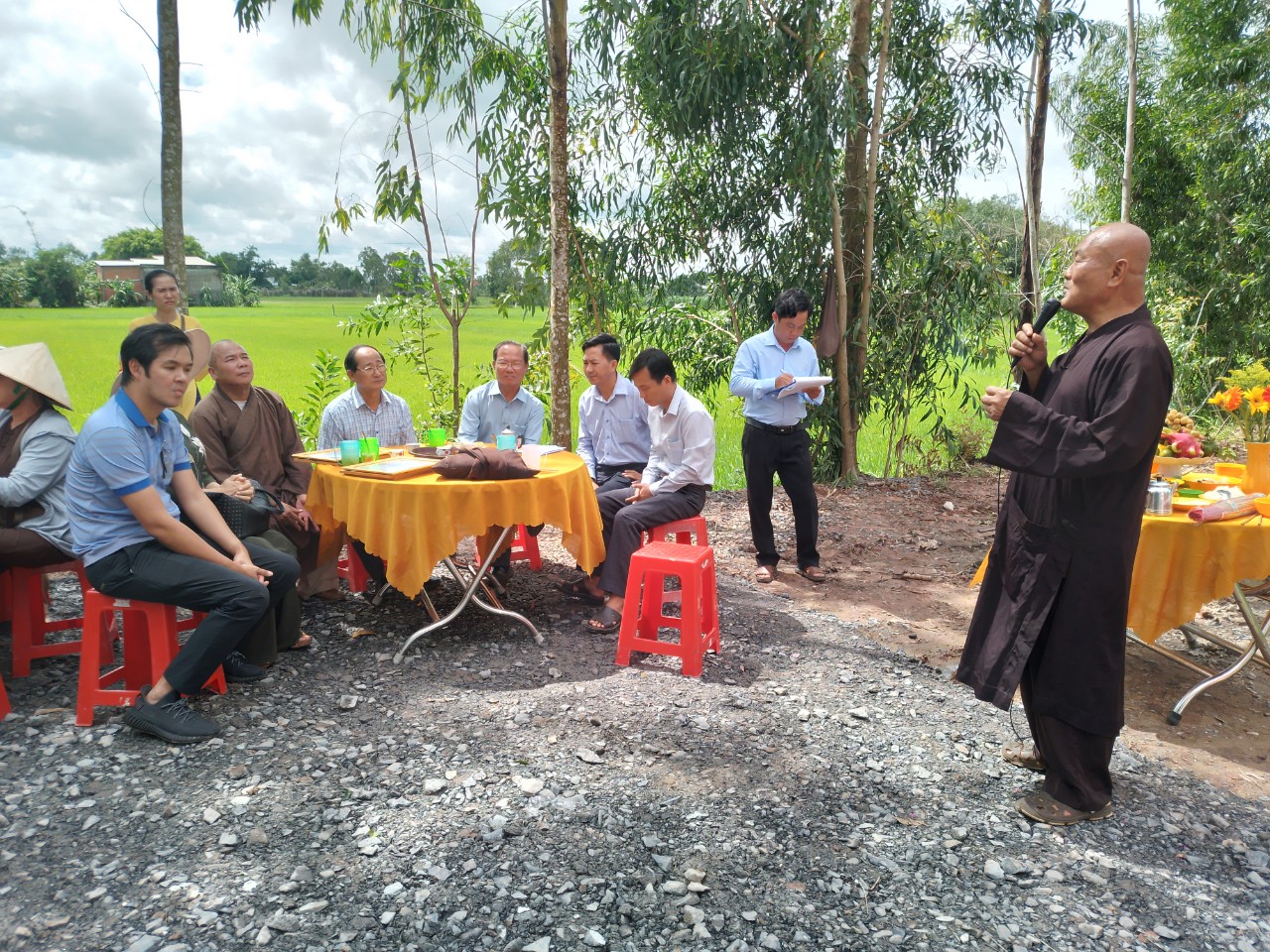 Đại điện chính quyền xã Mỹ Thạnh Đông có: ông Thi Hữu Giàu – huyện uỷ viên bí thư Đảng uỷ, chủ tịch UBND xã; ông Huỳnh Thanh Tâm – Phó bí thư Đảng ủy; ông Nguyễn Văn Thích –Bí thư chi bộ trưởng ban quản lý ấp 4 sở tại.