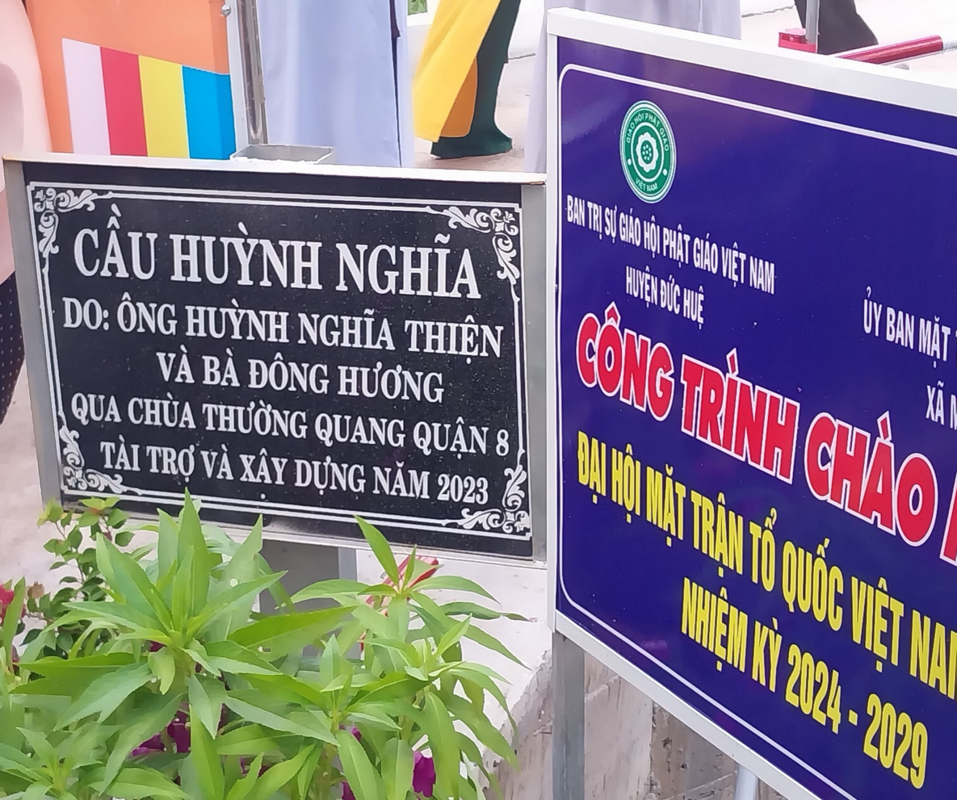 Được sự trợ duyên của Hòa thượng Thích Chơn Tịnh – Phó ban thừ thiện báo Giác Ngộ, trụ trì chùa Thường Quang, quận 8, Tp. Hồ Chí Minh và gia đình ông Huỳnh Nghĩa Thiện, bà Đông Hương tài trợ xây dựng cầu Huỳnh Nghĩa với chiều dài 9m, chiều ngang 3,5m với tổng giá trị là 150 triệu đồng.
