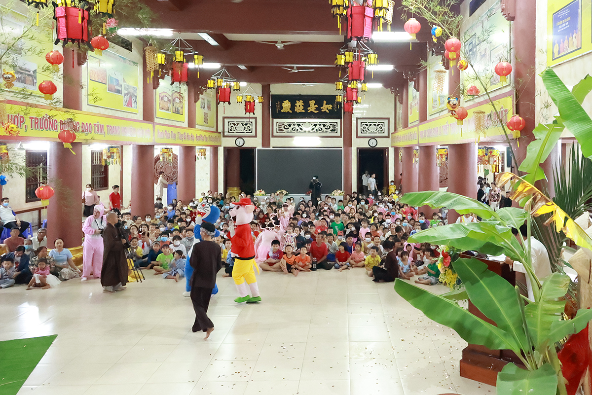 Trở về tham dự ngày hội các em được trải nghiệm qua các trò chơi dân gian, vui cùng các bạn thanh niên Phật tử câu lạc bộ trẻ chùa Thiên Châu, vui nhộn với tình tiết chú Cuội chị Hằng, tạo nên sân chơi vô cùng thân thiện trong ánh trăng của chốn cửa thiền hoan hỷ.
