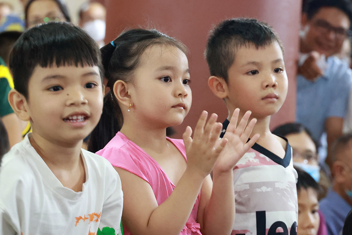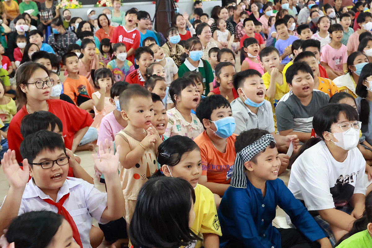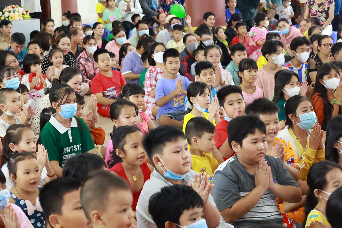 Cùng sự có mặt đông đảo của các cấp phụ huynh, có em thanh thiếu nhi, thanh niên Phật tử, với số lượng khoảng 500 em trở về tham dự.