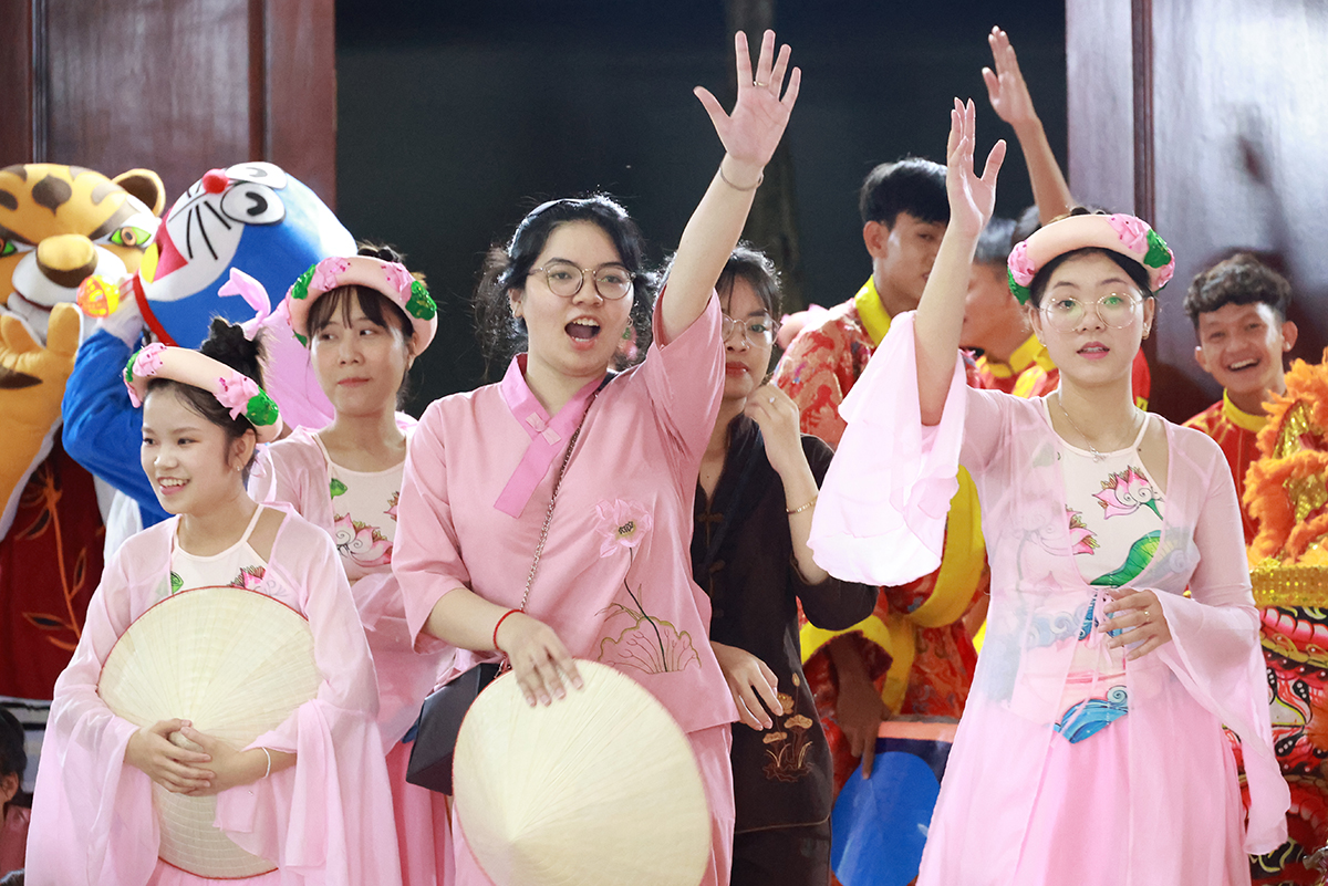 Sau tiết mục Văn nghệ mở màn, nhiều tiết mục hát múa khác, trống múa lân liên hồi để đón mừng ngày Tết Đoàn viên của Dân tộc, Tết trung thu cũng được xem là Tết cố truyền trong văn hóa Tâm linh người Việt, bên cạnh đó được xem là ngày Tết dành cho thiếu nhi qua các truyền thuyết về chú Cuội, chị Hằng, Thỏ ngọc,…, đêm hội trăng rằm thườn được tổ chức vào trung tuần tháng tám hằng năm, tiết giữa mùa thu nên gọi là Trung Thu.