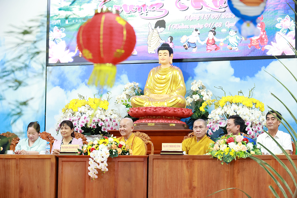 Hòa thượng đã cảm tạ quý lãnh đạo, đồng thời gửi lời chúc tốt đẹp nhất đến với mọi người về tham dự ngày hội, mong muốn các cấp chính quyền sẽ luôn tạo điều kiện tốt nhất nhằm quan tâm đến thế hệ trẻ, nhất là thiếu nhi là nòng cốt của nước nhà, xây dựng cho các em lối sống lành mạnh thông qua các ngày hội mang tính chất sinh động và hòa nhã như những ngày Tết Trung Thu, Tết cổ truyền,…. Cuối cùng Ngài chúc sức khỏe và chúc mọi người tham dự ngày hội được an vui tràn đầy ý nghĩa.
