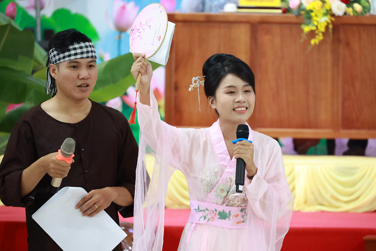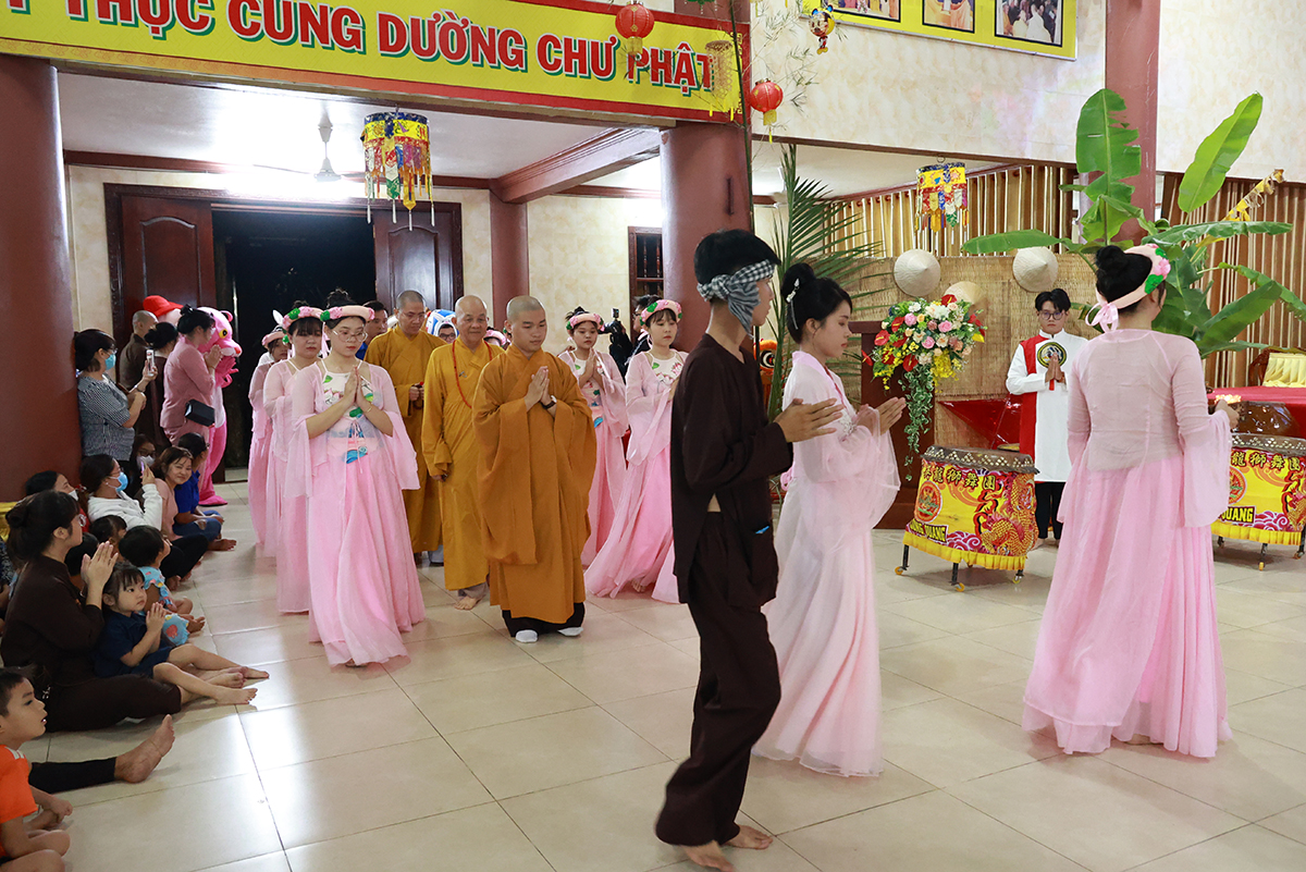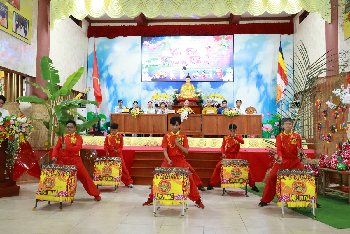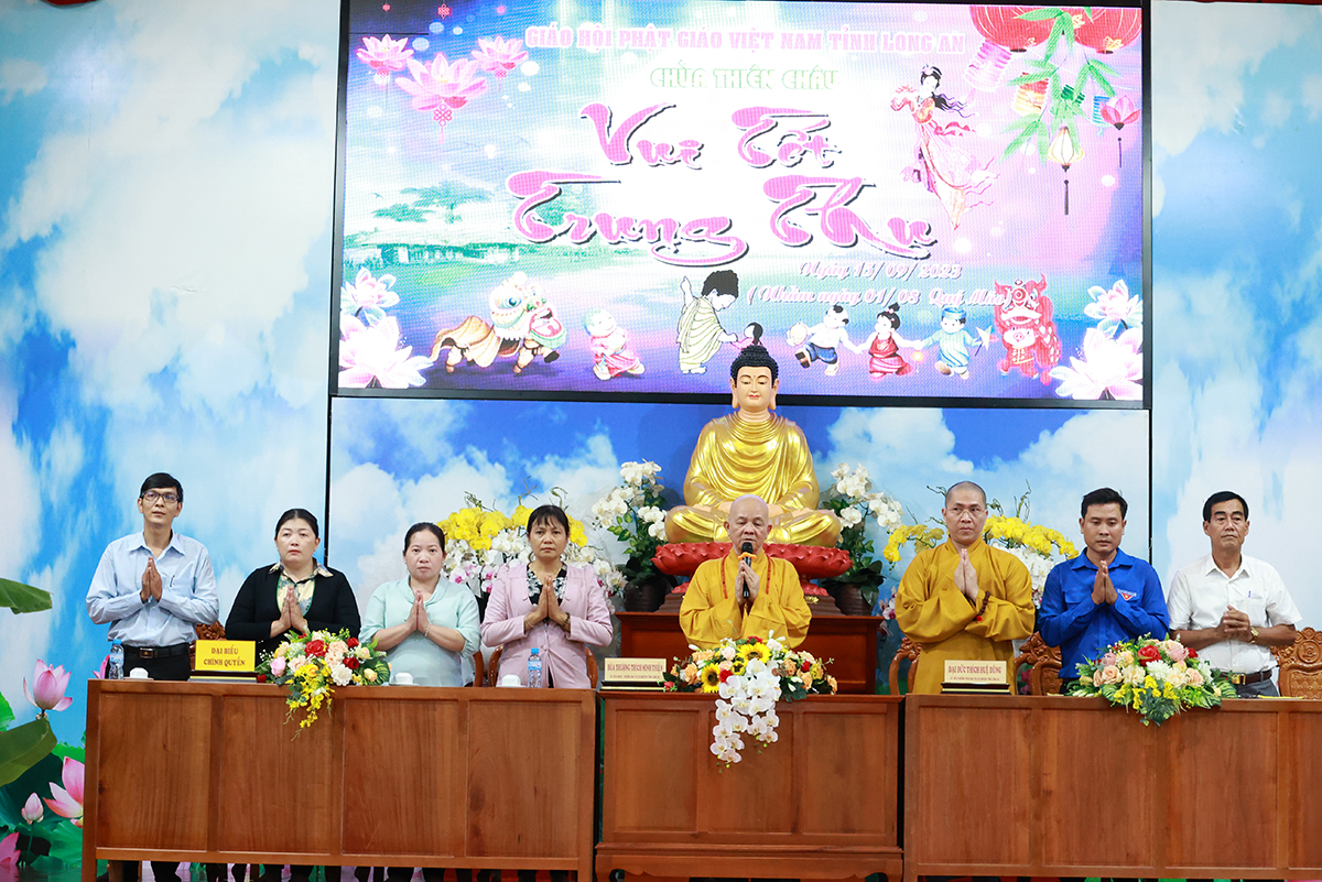 Đêm hội được lắng nghe lời pháp từ của Hòa thượng Thích Minh Thiện – UV HĐTS – Phó Trưởng Ban Hoằng pháp TƯ, Trưởng BTS GHPGVN tỉnh Long An, lời pháp ngữ Hòa thượng hoan hỷ với công tác chuẩn bị, dàn dựng kịch bản, tạo sân chơi và chu đáo về mặt quà tặng gửi đến các em tham gia ngày hội, Hòa thượng nhắc lại truyền thống Tết Trung Thu thông qua mẫu chuyện về Vua Đường Minh Hoàng ở Trung Hoa và bên cạnh đó nhắn nhủ về truyền thống văn hóa dân tộc Việt Nam qua ngày Tết Trung thu, đó là tinh thần tự cường, đoàn kết, yêu nước của dân tộc trong nền văn hiến tồn tại hơn 2000 năm lịch sử dựng nước và giữ nước.