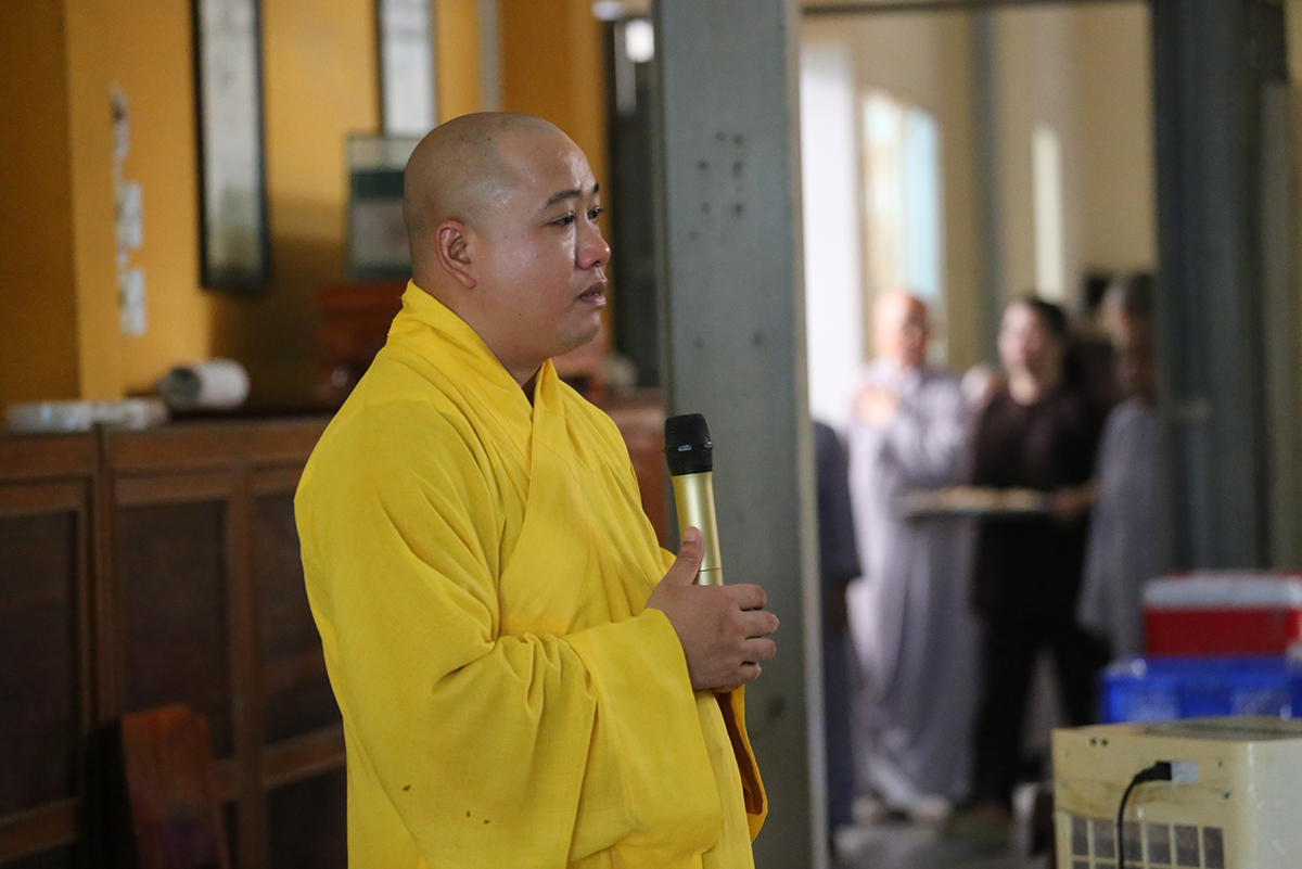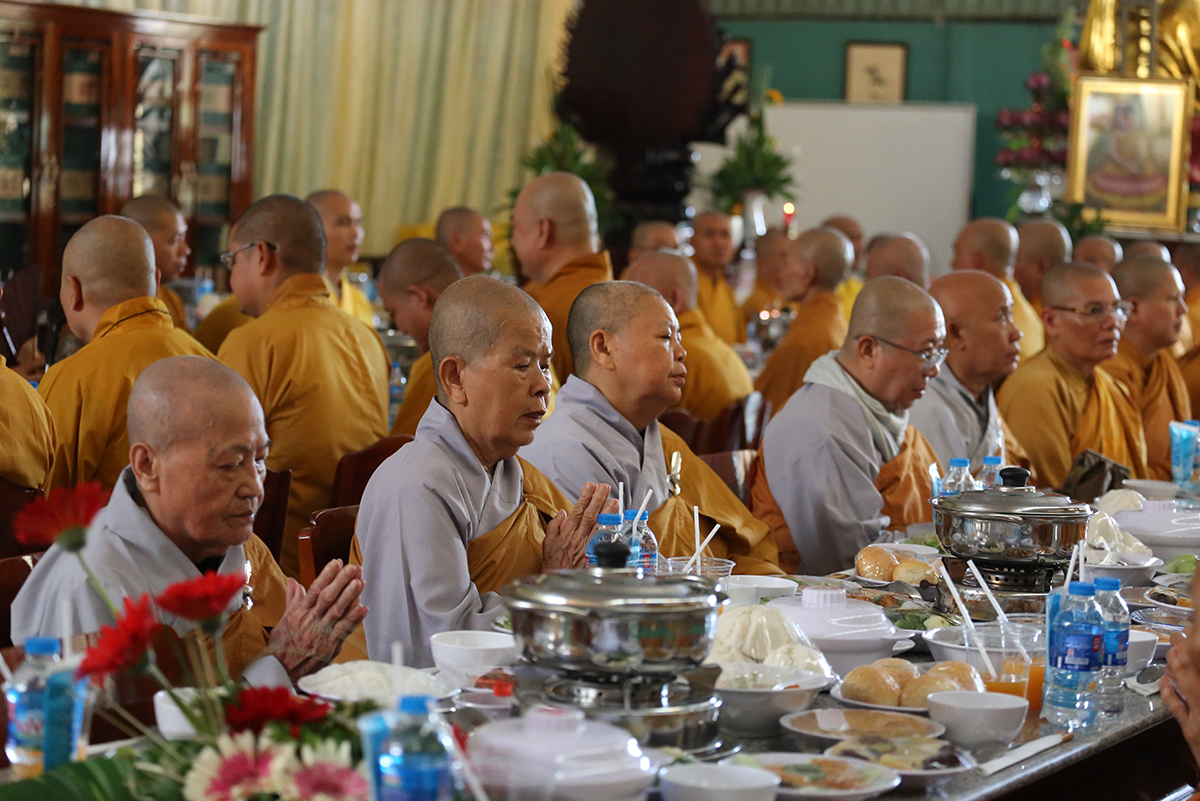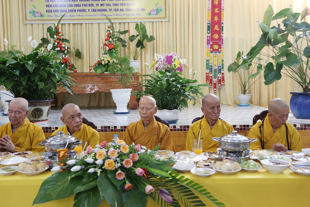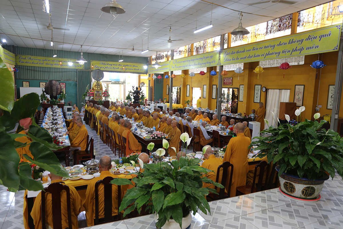 Tưởng niệm công đức của Cố Ni trưởng một đời đóng góp cho sự nghiệp đào tạo Ni tài trường Trung cấp Phật học tỉnh Long An, trang nghiêm các Phật sự Ni giới tại tỉnh Long An. TT. Thích Lệ Trí- UVHĐTS TW, Phó Trưởng ban Trị sự GHPGVN Tỉnh Long An đãi lao chư Tôn đức Ban thường trực PGVN tỉnh Long An cung tuyên tiểu sử niệm ân NT. Thượng như hạ Ngộ.
