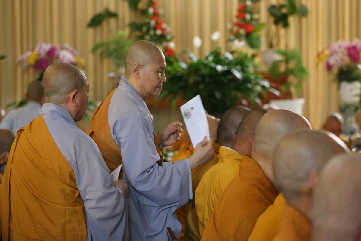 Đáp lại tấm lòng tri ân, hiếu kính của môn hạ tứ chúng đệ tử, Hòa thượng Thích Minh Thiện chân tình kính niệm ân Giác linh Ni trưởng thuở sinh thời và có lời sách tấn. Hòa thượng trân trọng tán thán tất cả công đức của Cố Ni trưởng đã gầy dựng tại mảnh đất Khánh Hậu từ việc xây dựng Tam Bảo cho đến phát đại tâm đồng hành cùng Ban Trị sự tỉnh nhà mở trường Phật học, làm nơi lưu trú cho chúng ni khắp xa gần. Bảy khóa học thành tựu viên mãn với hàng trăm Ni chúng, hiện tại đều là nhân sự có đầy đủ đạo hạnh tham gia phụng sự các Phật sự tỉnh Long An và các tỉnh thành trên mọi miền đất nước Việt Nam. Ni trưởng là bậc Ni lưu xứng danh Pháp tử tiếp bước Đại Ái Đạo Ni kiến lập đạo tràng, khai minh tuệ nghiệp, báo Phật ân đức.
