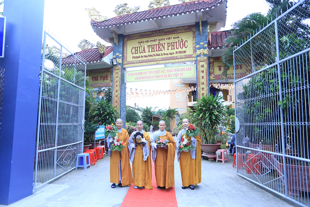 Với tất cả tấm lòng chí thành ngưỡng vọng, buổi lễ được cung tiếp chư Tôn đức Hòa thượng: HT. Thích Thiện Huệ- Chứng minh Ban TSGHPGVN tỉnh Long An; HT. Thích Thiện Xuân- Thành viên HĐ CMTW GHPGVN, Trưởng Môn phong Thiên Thai Thiền giáo tông; HT. Thích Minh Thiện- UVHĐTS, Phó Trưởng ban Hoằng pháp TW, Trưởng ban Trị sự GHPGVN tỉnh Long An; HT. Thích Huệ Hồng, CMBTSGHPGVN tỉnh Long An; HT. Thích Thiện Tài- CM BTS GHPGVN; HT. Thích Quảng Ý- CMBTS GHPGVN tỉnh Long An; TT. Thích Quảng Tâm- UVHĐTS, Phó Trưởng Ban Thường trực GHPGVN tỉnh Long An; ĐĐ. Thích Lệ Ngôn- Phó Trưởng Ban, Trưởng ban Hoằng pháp GHPGVN tỉnh Long An, cùng chư Tôn đức Tăng các Ban Trị sự huyện thị Long An; chư Tôn đức Tăng Ni trụ trì các tự viện tỉnh Long An, tỉnh Tiền Giang, tỉnh Bến Tre đồng quang lâm chứng minh, và thiện nam tín nữ gần xa đều tham dự.