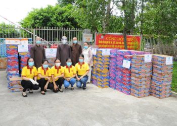 Ban Trị sự GHPGVN huyện Thạnh hóa và Chùa Ân Thọ tiếp tế đến Bệnh viện đa khoa Long An